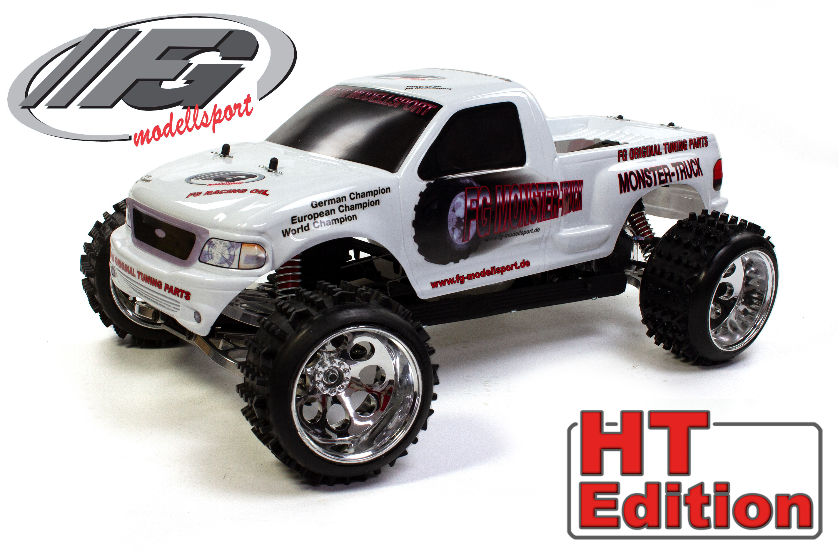 This stadium truck is the perfect model for the entry into the RC large scale sport. The model is fully assembled and can be equipped with an RC system in our shopping cart selection. It is optionally available with clear (for individual painting) or factory painted Lexan body shell. Limited Edition tune parts:2x 4492 Alu Querlenker hinten untenPreis: 55,70 EUR1x 4475/01 Rear alloy shock mountPrice: 96,10 EUR1x 6423 Gear protectorPrice: 20,70 EUR1x 6499 Alloy front shock towerPrice: 69,70 EUR4x 18001 Alloy a-armPrice: 131,60 EURBase price Stadium Truck Sportsline829,90 EURSurcharge Limited Edition tuning parts:373,80 EURSurcharge HT-Edition:281,40 EURRegular price Limited HT-Edition:1485,10 EURThe Stadium Truck comes top equipped as standard and also offers numerous choices for additional option parts to increase driving performance.HT-Edition? HT-Edition means: this version comes with a big set of spare / option parts included. Steel pinions - Non-standard sizesEach of two different ratios are supplied with.Modul: m=1,5Value: 62,60 EURAlloy engine mount smallCNC machined alloy engine mounts, direkt replacement for the stock plastic parts, heat and tweak resistant.Value: 54,90 EURAlloy spur gear carrierUse for 48T - 46 teeth spur gears.Value: 39,90 EURBall bearing set, sealed, set of 14The seal rings on sealed ball bearings keep dirt and dust out of the bearings. They are therefore particularly suitable for use in dirty and dusty environments.Value: 59,90 EURTotal value: 217,30 EURProduct details:1/6 scale 2WD Stadium Truck with double wishbone independent suspension. 4 mm metal chassis plate. All holes on the underside are countersunkFuel tank and RC components are protected by the bevelled chassis>Adjustable toe-in/out on the front suspension>Adjustable camber on the rear suspension>4 large-volume oil pressure shocks absorbers with adjustable spring tension for a smooth ride. The secondary spur gears, differential gears and all drive parts are case hardenedThe stadium truck comes with a powerful 26cm³ FG 260 internal combustion engine. This requires standard 2-stroke gas/oil mix available at every gas station.With a tank capacity of 0.7 litres, a driving time of approx. 40 minutes is achieved.You can select the car with complete RTR-equipment from the options menu. RTR-equipment RTR = Ready to Run. The RTR version comes ready to use with the 2,4 GHz rc-system already installed. Transmitter: Reflex Wheel Pro III 2,4 GHzReceiver: Mini BECHigh power servo for throttle and brakeLargescale servo for steeringTx-battery, rx-battery DimensionsLength: 730 mmWidth: 510 mmHeight: 360 mmWheelbase: 470 mm