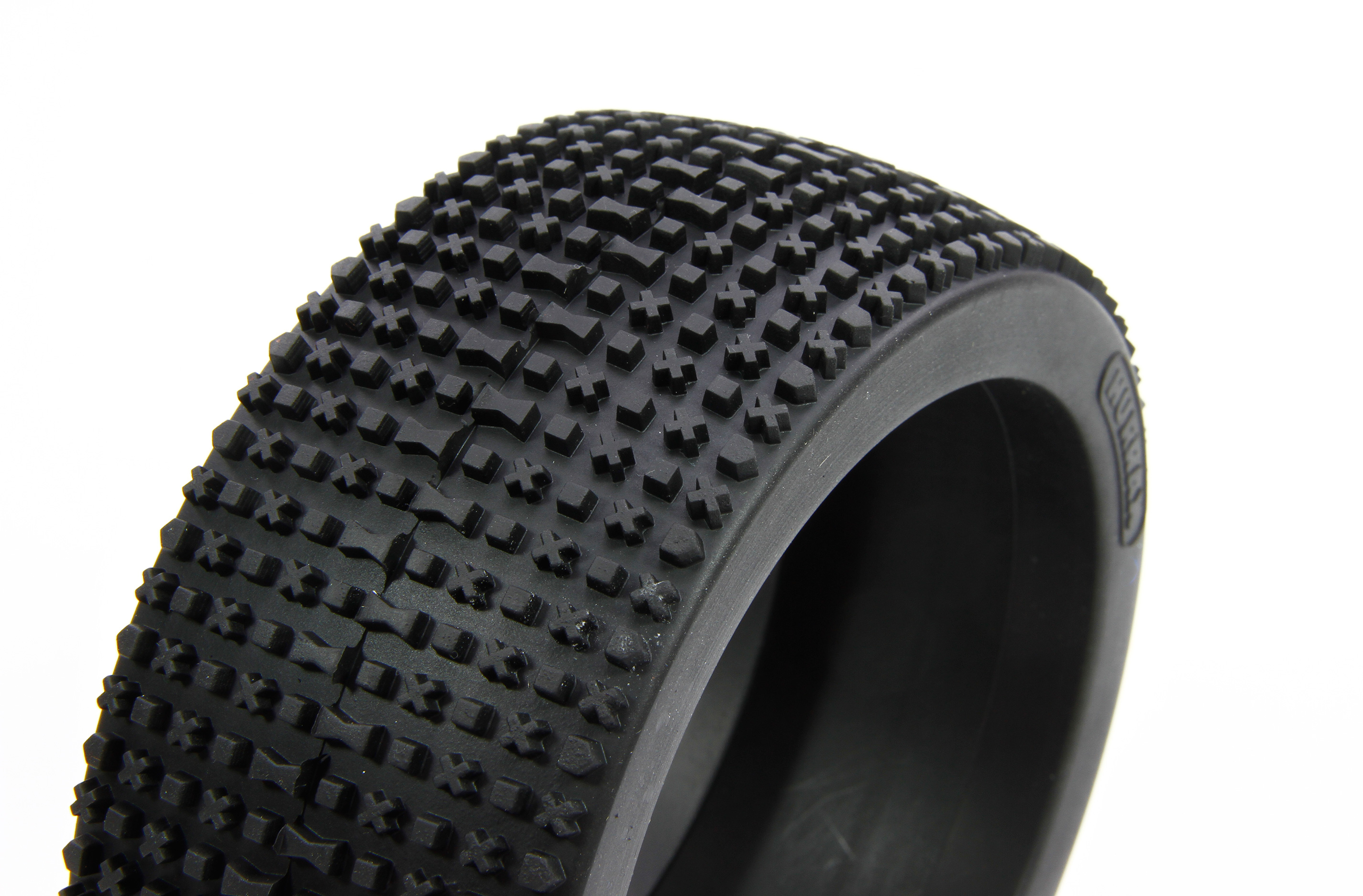 HURRAX extreme is one of the most successful tire in large scale off-road racing and specifically designed for astro turf and solid ground. With more than 700 (!) differently designed, closely spaced lugs and the 70 mm wide tread it is reasonably wear resistant and provides optimal grip with good side traction.