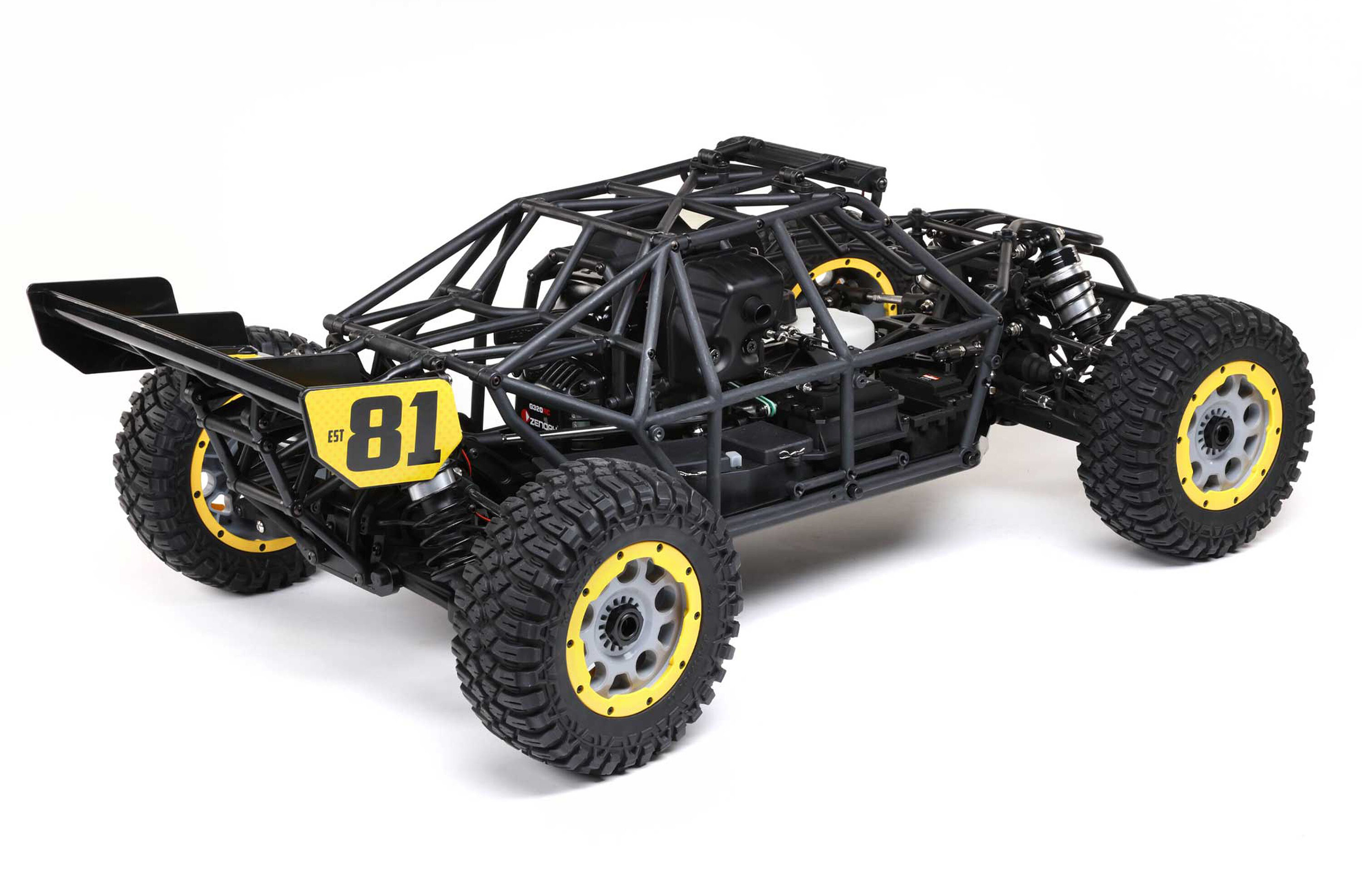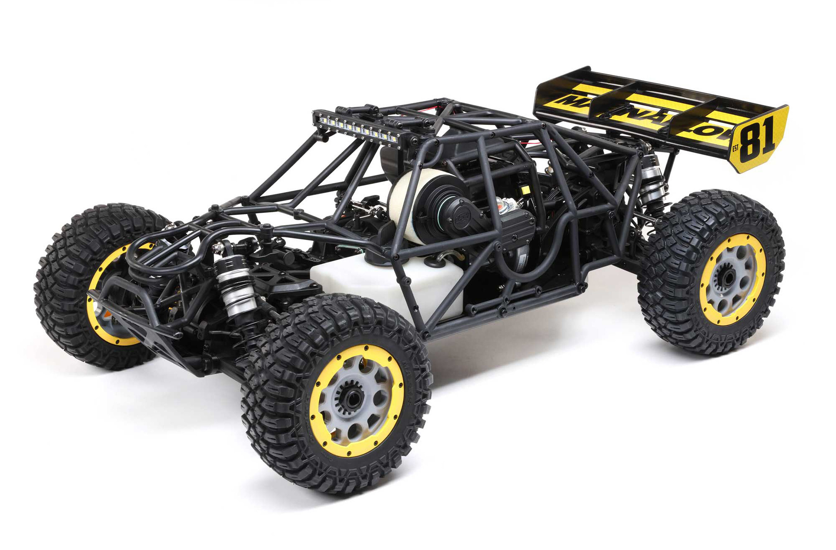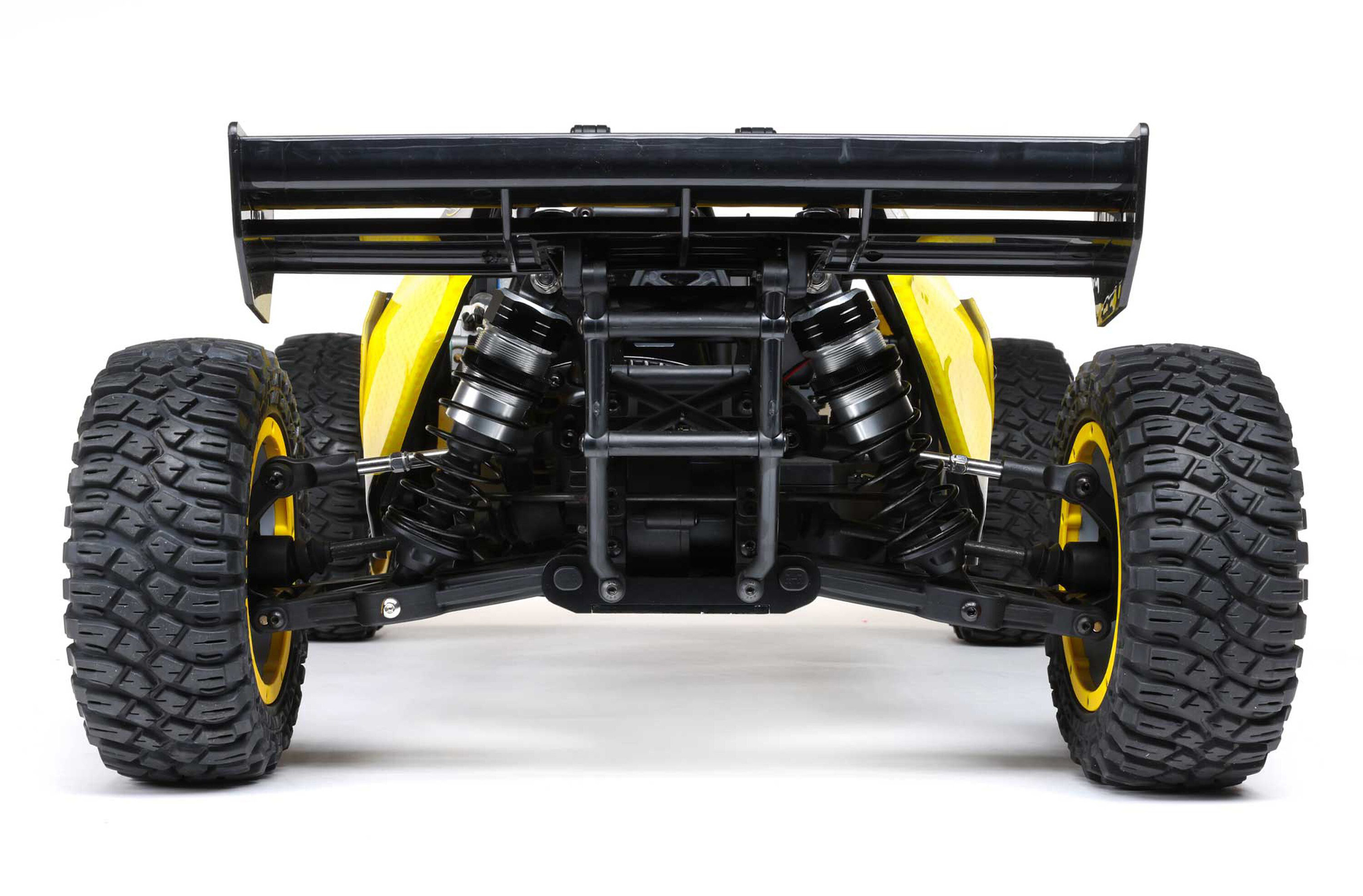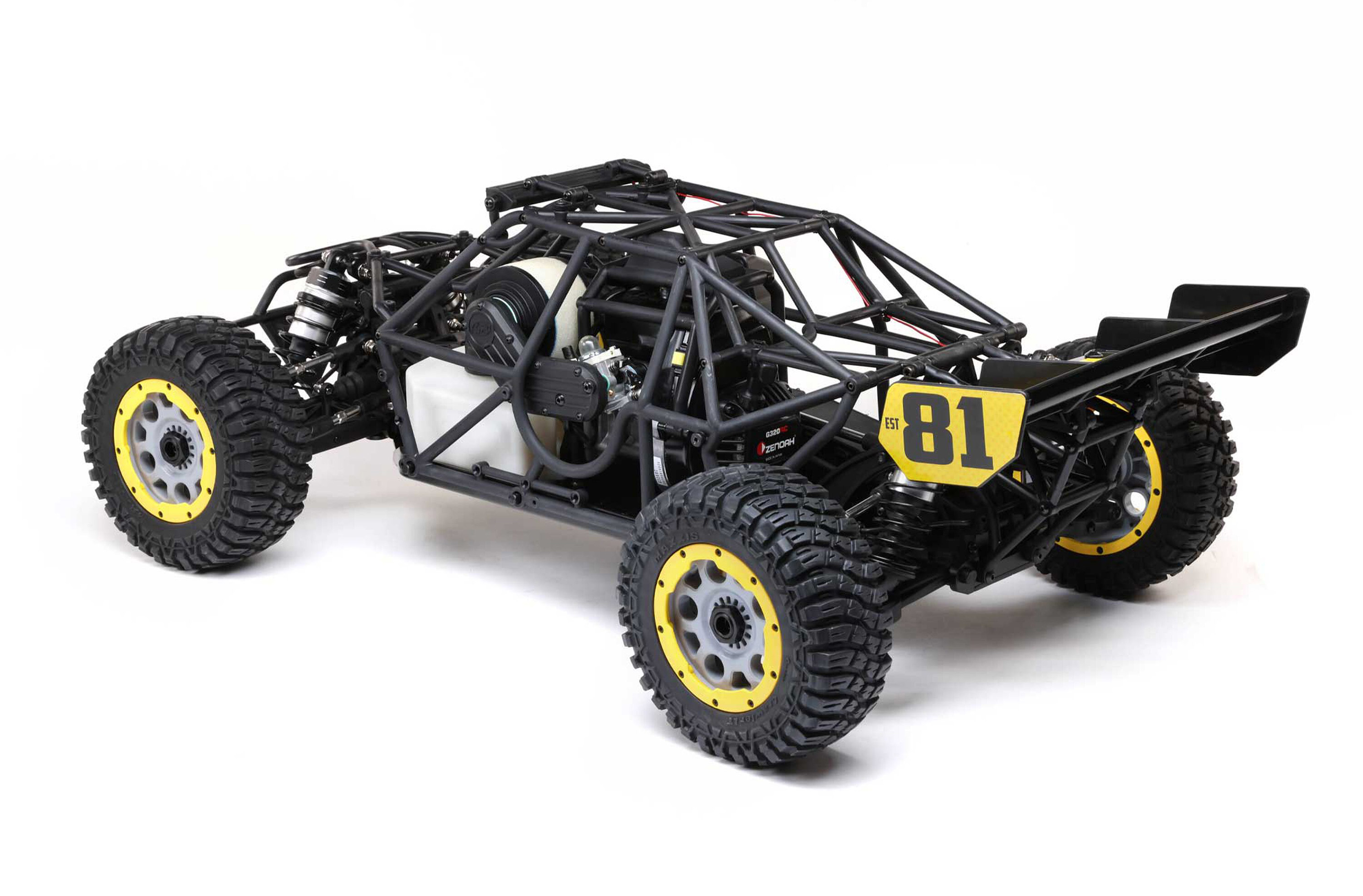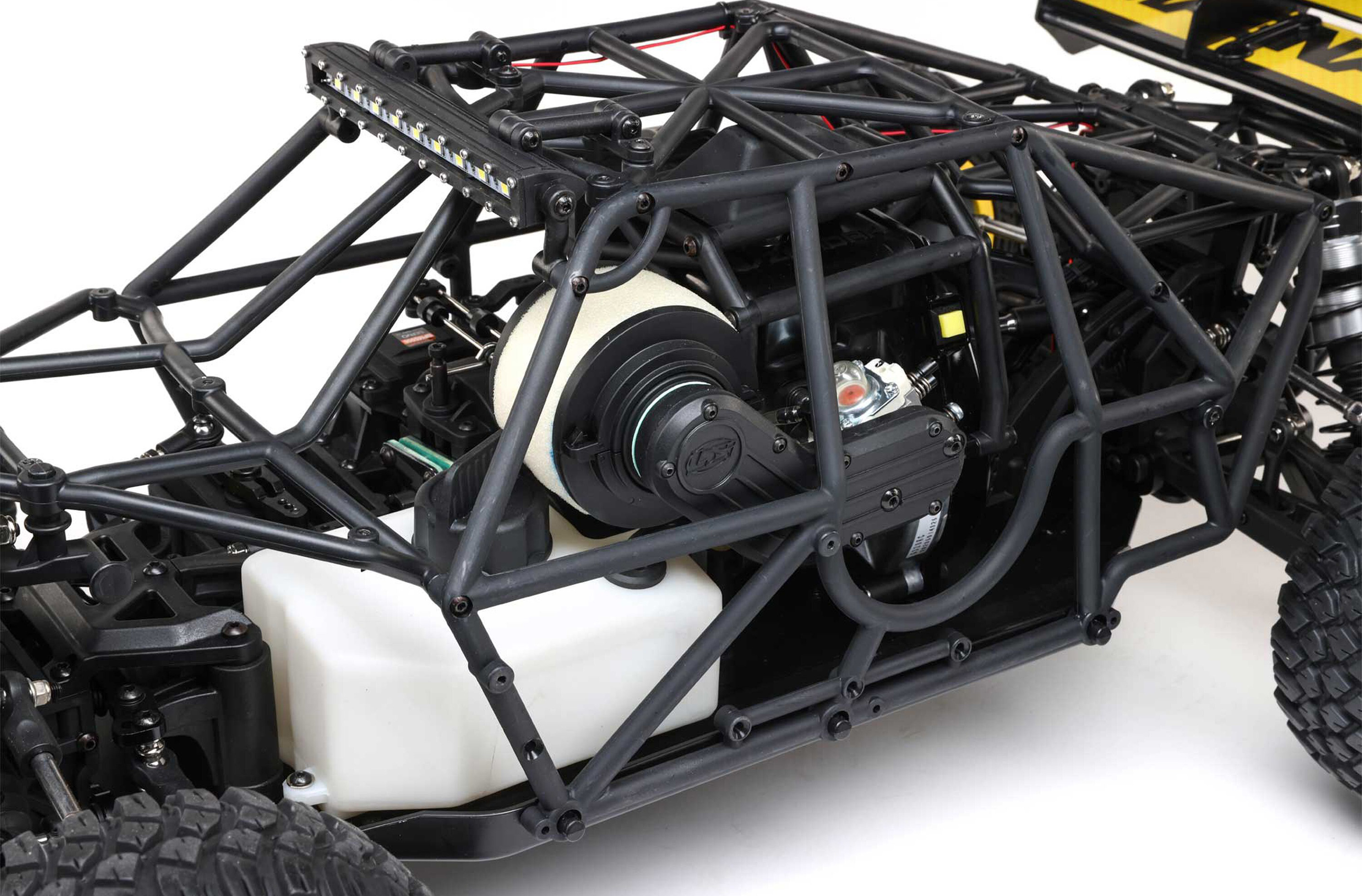 The DBXL Platform has been a solid performer, and since its release, there have been minimal changes until now! Everything learned from the DBXL-E and DBXL-E 2.0 has directly been applied to the new and improved Losi® DBXL 2.0 4WD Gas RTR buggy. Built big and bold to deliver high-impact excitement, the DBXL 2.0 makes its presence known with a roaring new Zenoah® 32cc engine. A new high-flow air filter allows the engine to breathe to create maximum horsepower. This Losi 1/5th scale buggy powerhouse is designed to withstand the rigors of intense off-road driving with a full-time 4WD 5mm drivetrain, gearboxes, and heavy-duty construction that pulverizes the terrain at ballistic speeds. A brand-new steering rack and servo saver assembly keep your 2.0 tracking straight over any environment. A new radio tray, receiver box, and HV-rated servos take your DBXL 2.0 to the next level of performance. The DBXL 2.0 is also in for the long haul with a large-capacity tank for extended run times. The Losi DBXL 2.0 4WD Gas RTR is large-scale RC driving excitement at its most satisfying.Features Full 4WD drivetrain Pull Start Zenoah® G320 32cc 2-stroke gasoline engine Spektrum 3-channel SLT3 radio system Machined ring and pinion gear 800cc gas tank Integrated adjustable servo saver 4mm aluminum chassis Dual disk brakes Sealed differentials Icon Vehicle Dynamics and Magnaflow Liveries Zenoah® G320 32cc 2-stroke Gasoline EngineNew larger 32cc engine will provide the heart-pounding thrills you come to expect from a gasoline-powered engine. More displacement means more horsepower and more fun! New Center Pinned Outdrive CupsThe center drive cups have been redesigned so that they are now a ring captured design like the 5IVE-T, reducing the chances of drivetrain failures. 5mm Drive PinsTo put the power to the ground, we have increased the size of the outdrives and drive pins in all the dogbones to 5mm. They are still replaceable but now provide you the added strength and durability for the increased horsepower. Updated Gear BoxesProven on the DBXL-E 2.0, the gearboxes are now secured to the bulkheads with two screws to keep them from rocking up and down when power is applied. The gearboxes also allow for a more secure closure to better keep the pinion gear in place for increased strength and durability. Updated Steering Rack and Servo SaverUpdated helical design adds strength while providing a much smoother servo saver action for increased servo durability. Aluminum Shock Towers6mm thick Aluminum Front and Rear Shock Towers. Not only do these shock towers add durability/tunability to the DBXL 2.0, but they also add more tuning options to dial in your ride. Updated Shock BodiesUpdated shock bodies with a new lower aluminum cap allow for easier maintenance when changing out the shock O-rings. Updated Servo TrayNew servo tray allows you to run single or dual 1/5 scale steering servos as well as simplifying the throttle/brake linkage of easier tuning and adjustments. Updated Sway Bar LinksUpdated, larger, stronger sway bar links for added durability. New Chassis BracesNew dual rear chassis braces and torque rod increase chassis stiffness and durability Chassis Stiffening Plate4mm chassis stiffening plate under the engine allows for the use of engine slugs to set the gear mesh and reduce the chances of engine movement during large impacts. New Gas TankNew larger gas tank provides increased run time and a standard thread gas cap. New Center Differential Mount and Brake AssemblyConventional center differential mount allows for faster front and rear brake adjustments for improved handling. Authentic Motorsports Race Themed LiveriesMagnaflow Exhaust and Icon Vehicle Dynamics liveries LiPo Receiver PackThe included rechargeable 4000mAh 2S 7.4V Smart LiPo Receiver Battery allows for hours of playtime without stopping to re-charge Spektrum SLT3 Transmitter with Dual Protocol ReceiverA great low-cost radio system for bashers, crawler fans, and first-time drivers, the Spektrum 3-channel SLT3 with SR315 receiver goes beyond basic offering dependable SLT 2.4GHz control now, plus next-level DSMR® upgrade potential for the future. In The Box (1) DBXL 2.0 4WD Gas RTR (1) Spektrum SLT3 Transmitter with Dual Protocol (1) 4000mAh 2S 7.4V Smart LiPo Receiver Battery (1) Zenoah® G320 32cc 2-stroke gasoline engine (4) AA Batteries (1) User Manual (1) Miscellaneous Tools