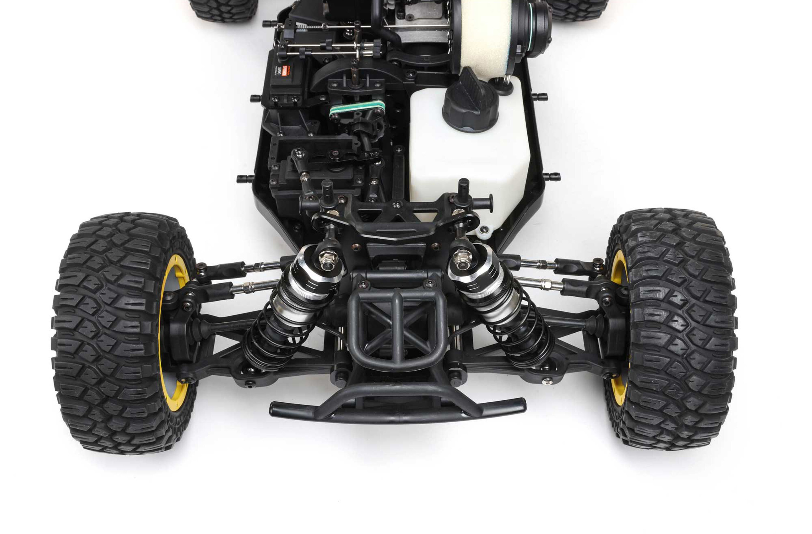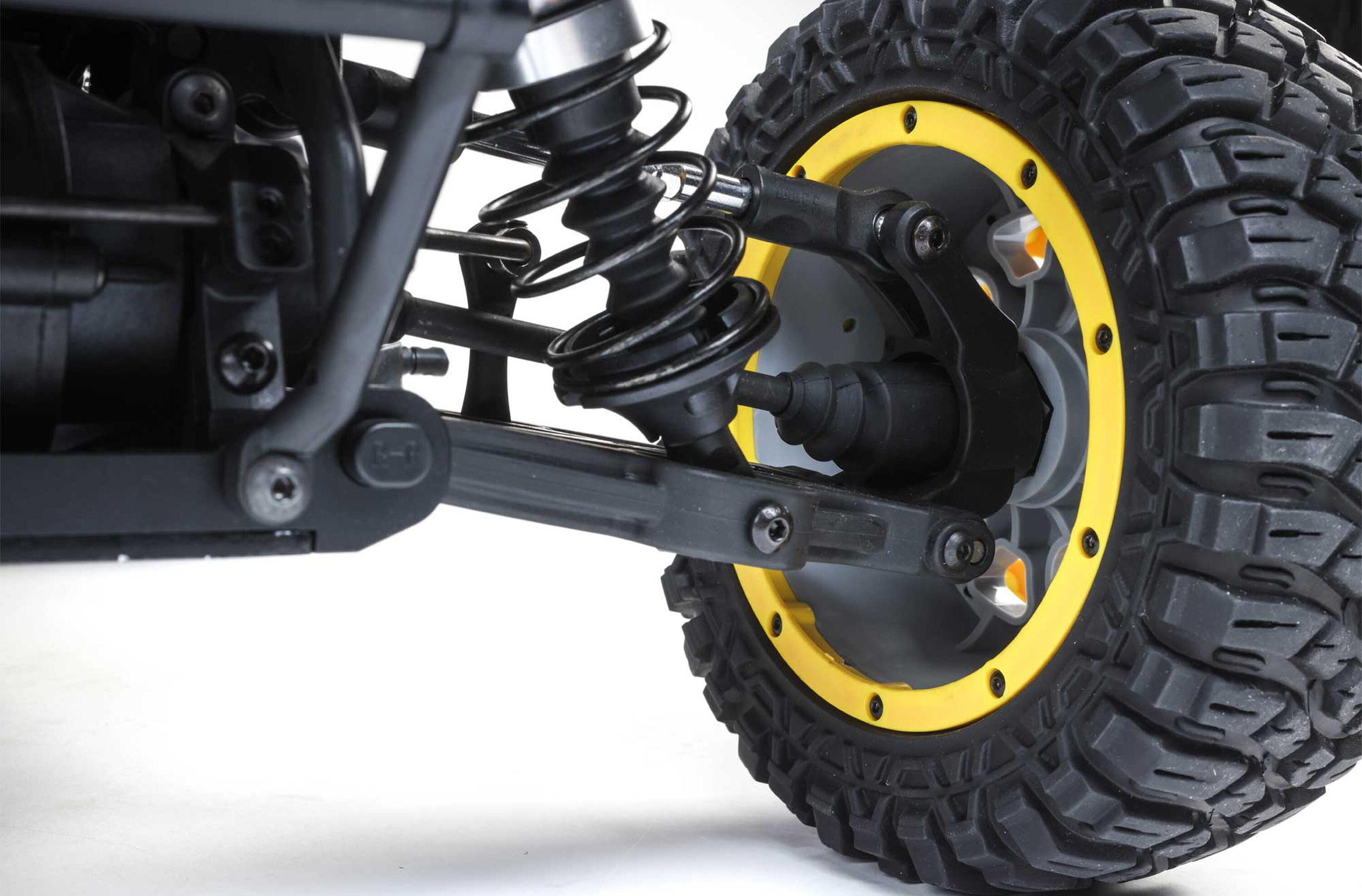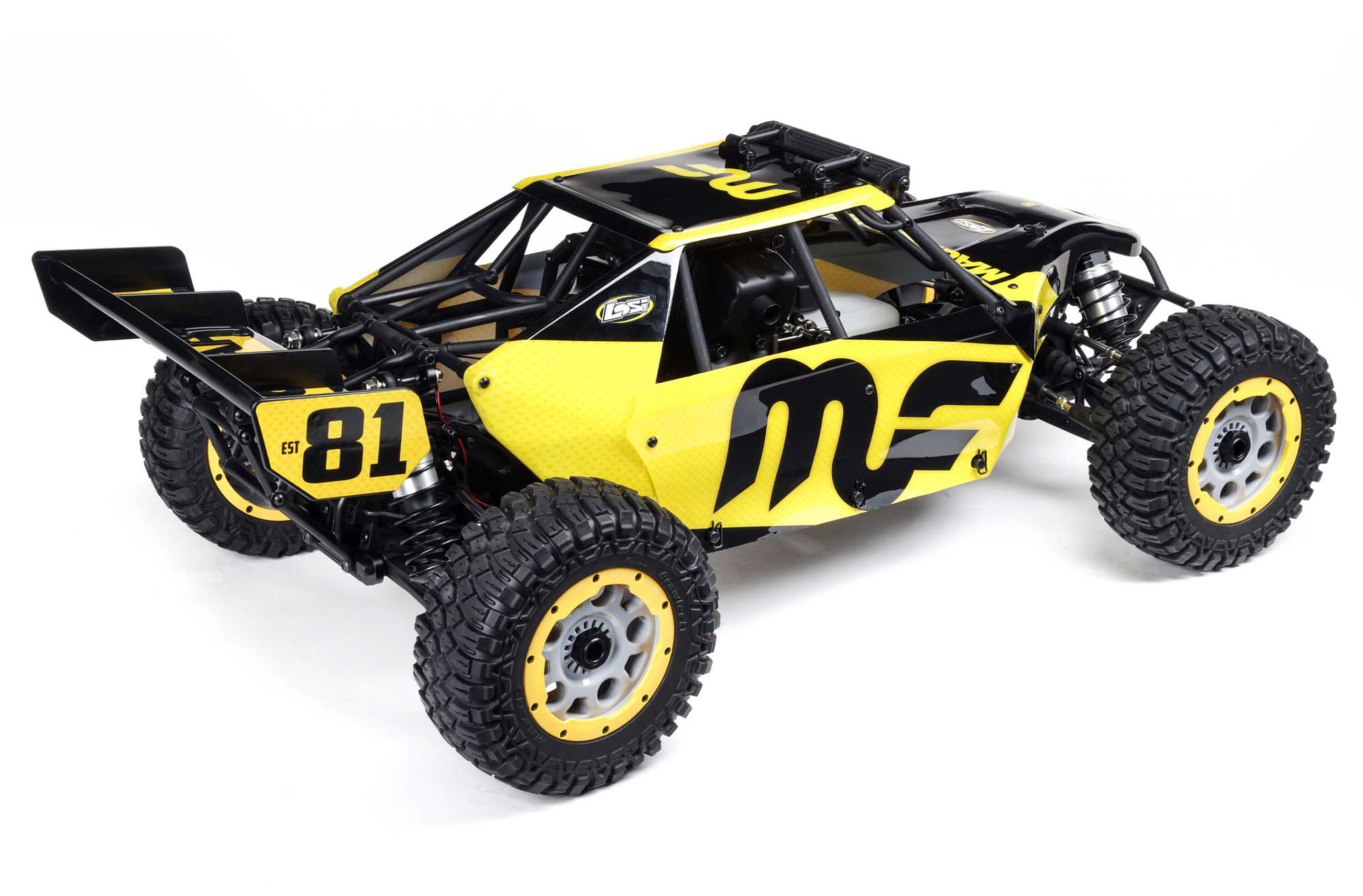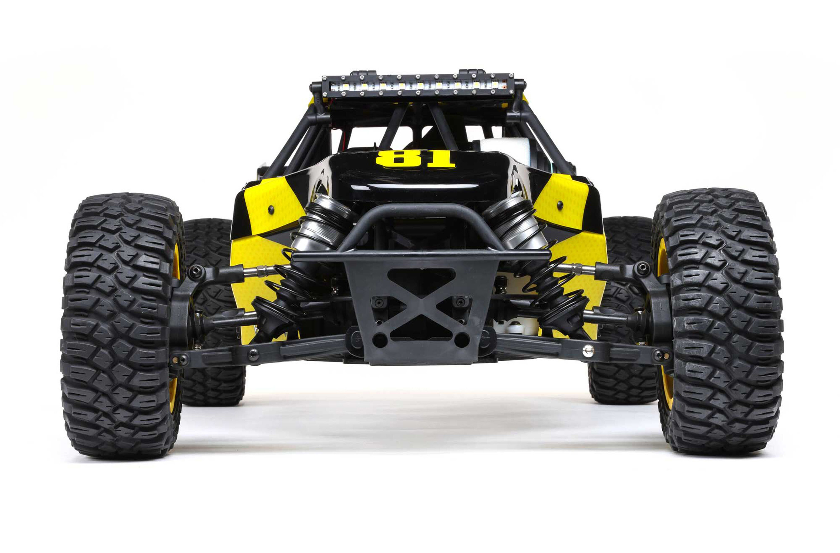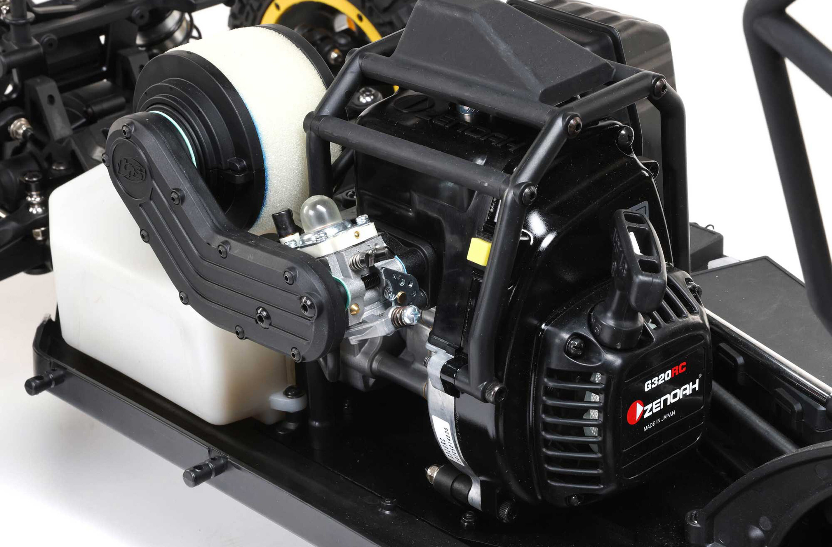The DBXL Platform has been a solid performer, and since its release, there have been minimal changes until now! Everything learned from the DBXL-E and DBXL-E 2.0 has directly been applied to the new and improved Losi® DBXL 2.0 4WD Gas RTR buggy. Built big and bold to deliver high-impact excitement, the DBXL 2.0 makes its presence known with a roaring new Zenoah® 32cc engine. A new high-flow air filter allows the engine to breathe to create maximum horsepower. This Losi 1/5th scale buggy powerhouse is designed to withstand the rigors of intense off-road driving with a full-time 4WD 5mm drivetrain, gearboxes, and heavy-duty construction that pulverizes the terrain at ballistic speeds. A brand-new steering rack and servo saver assembly keep your 2.0 tracking straight over any environment. A new radio tray, receiver box, and HV-rated servos take your DBXL 2.0 to the next level of performance. The DBXL 2.0 is also in for the long haul with a large-capacity tank for extended run times. The Losi DBXL 2.0 4WD Gas RTR is large-scale RC driving excitement at its most satisfying.Features Full 4WD drivetrain Pull Start Zenoah® G320 32cc 2-stroke gasoline engine Spektrum 3-channel SLT3 radio system Machined ring and pinion gear 800cc gas tank Integrated adjustable servo saver 4mm aluminum chassis Dual disk brakes Sealed differentials Icon Vehicle Dynamics and Magnaflow Liveries Zenoah® G320 32cc 2-stroke Gasoline EngineNew larger 32cc engine will provide the heart-pounding thrills you come to expect from a gasoline-powered engine. More displacement means more horsepower and more fun! New Center Pinned Outdrive CupsThe center drive cups have been redesigned so that they are now a ring captured design like the 5IVE-T, reducing the chances of drivetrain failures. 5mm Drive PinsTo put the power to the ground, we have increased the size of the outdrives and drive pins in all the dogbones to 5mm. They are still replaceable but now provide you the added strength and durability for the increased horsepower. Updated Gear BoxesProven on the DBXL-E 2.0, the gearboxes are now secured to the bulkheads with two screws to keep them from rocking up and down when power is applied. The gearboxes also allow for a more secure closure to better keep the pinion gear in place for increased strength and durability. Updated Steering Rack and Servo SaverUpdated helical design adds strength while providing a much smoother servo saver action for increased servo durability. Aluminum Shock Towers6mm thick Aluminum Front and Rear Shock Towers. Not only do these shock towers add durability/tunability to the DBXL 2.0, but they also add more tuning options to dial in your ride. Updated Shock BodiesUpdated shock bodies with a new lower aluminum cap allow for easier maintenance when changing out the shock O-rings. Updated Servo TrayNew servo tray allows you to run single or dual 1/5 scale steering servos as well as simplifying the throttle/brake linkage of easier tuning and adjustments. Updated Sway Bar LinksUpdated, larger, stronger sway bar links for added durability. New Chassis BracesNew dual rear chassis braces and torque rod increase chassis stiffness and durability Chassis Stiffening Plate4mm chassis stiffening plate under the engine allows for the use of engine slugs to set the gear mesh and reduce the chances of engine movement during large impacts. New Gas TankNew larger gas tank provides increased run time and a standard thread gas cap. New Center Differential Mount and Brake AssemblyConventional center differential mount allows for faster front and rear brake adjustments for improved handling. Authentic Motorsports Race Themed LiveriesMagnaflow Exhaust and Icon Vehicle Dynamics liveries LiPo Receiver PackThe included rechargeable 4000mAh 2S 7.4V Smart LiPo Receiver Battery allows for hours of playtime without stopping to re-charge Spektrum SLT3 Transmitter with Dual Protocol ReceiverA great low-cost radio system for bashers, crawler fans, and first-time drivers, the Spektrum 3-channel SLT3 with SR315 receiver goes beyond basic offering dependable SLT 2.4GHz control now, plus next-level DSMR® upgrade potential for the future. In The Box (1) DBXL 2.0 4WD Gas RTR (1) Spektrum SLT3 Transmitter with Dual Protocol (1) 4000mAh 2S 7.4V Smart LiPo Receiver Battery (1) Zenoah® G320 32cc 2-stroke gasoline engine (4) AA Batteries (1) User Manual (1) Miscellaneous Tools