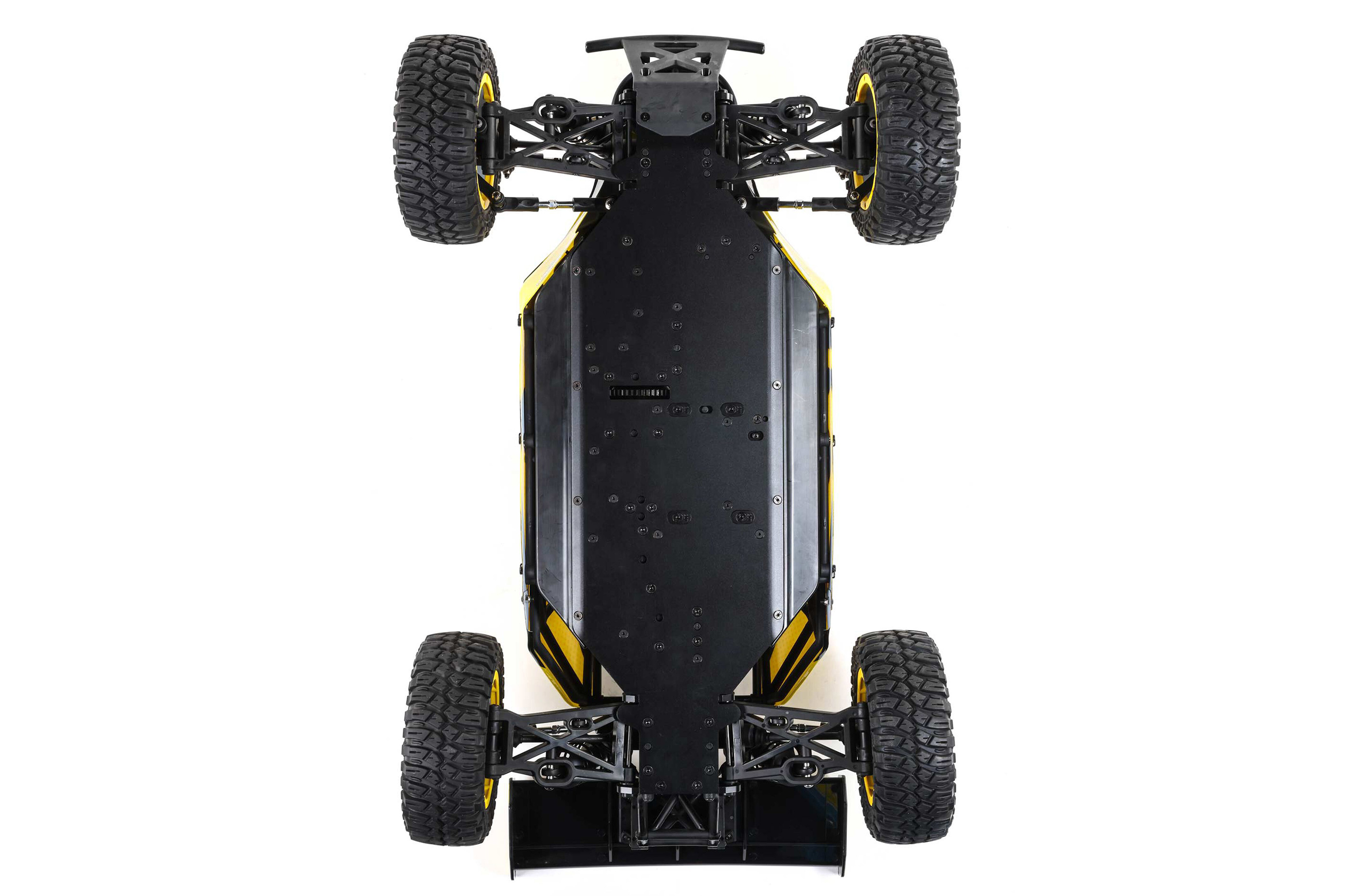 4mm chassis stiffening plate under the engine allows for the use of engine slugs to set the gear mesh and reduce the chances of engine movement during large impacts.