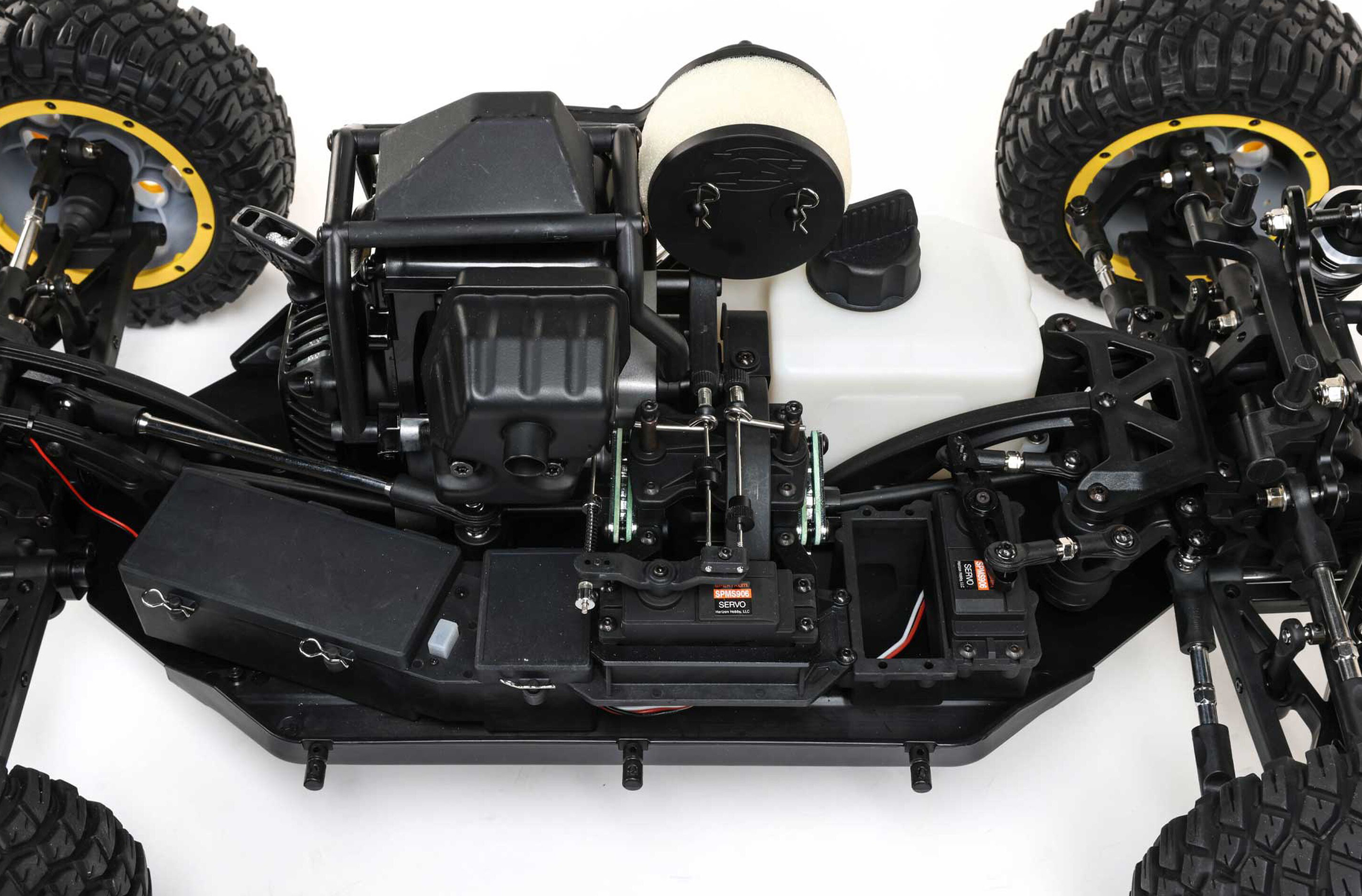 New servo tray allows you to run single or dual 1/5 scale steering servos as well as simplifying the throttle/brake linkage of easier tuning and adjustments.