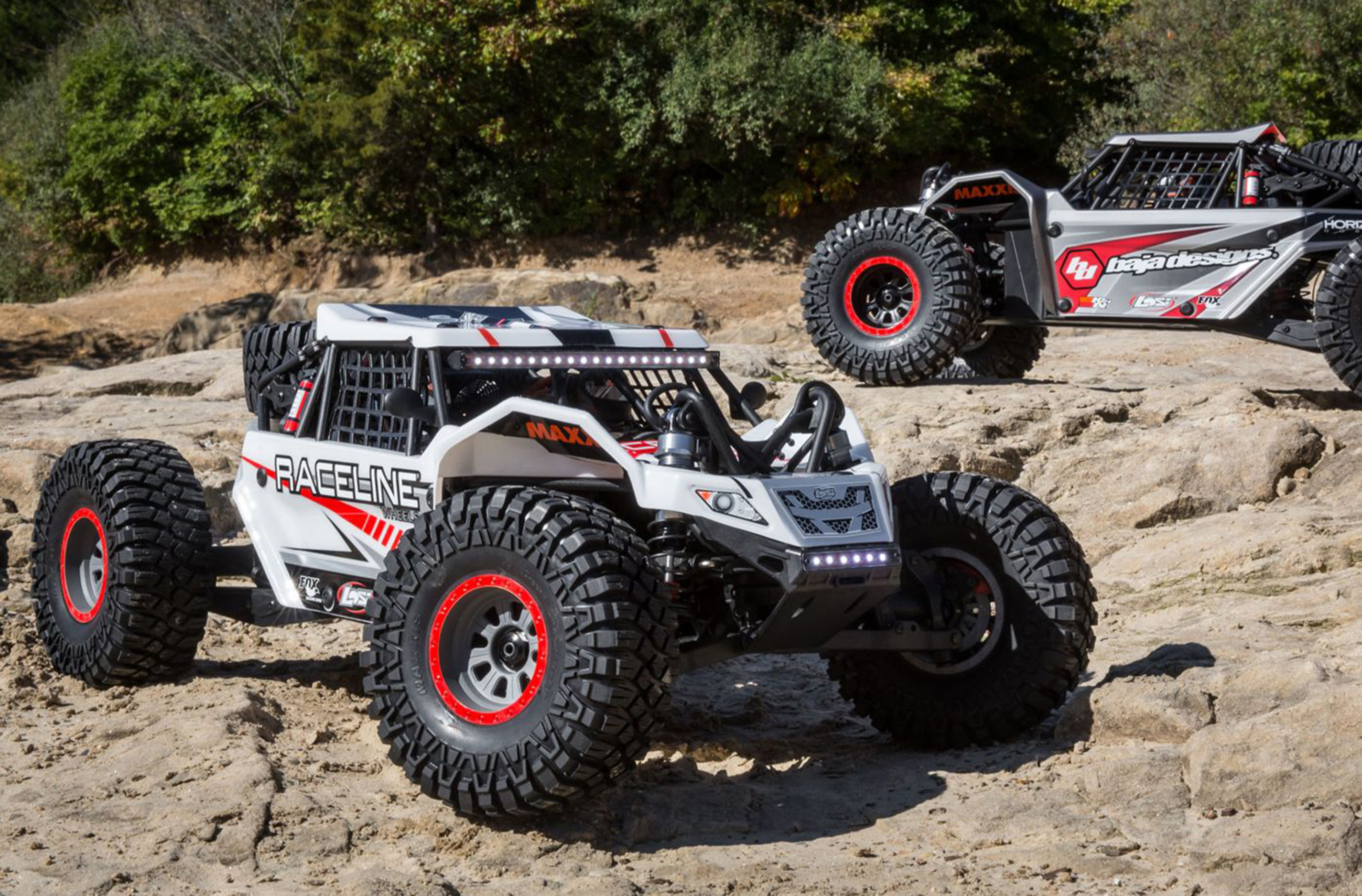 Licensed Raceline Wheels and Baja Designs trim schemes complete the scale details of the Super Rock Rey. These trim schemes will have racers doing double takes as they take on all comers.
