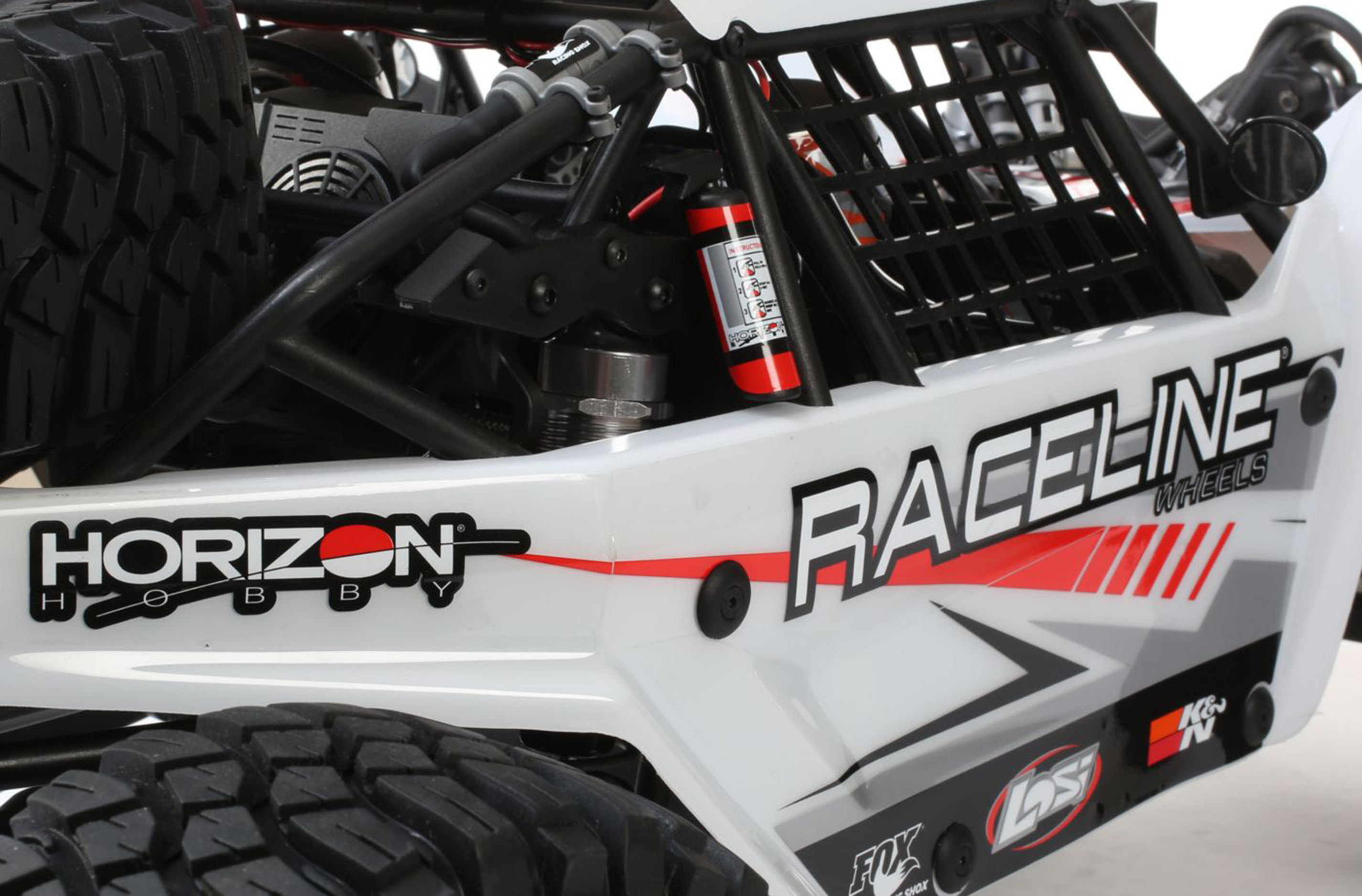 The Super Rock Rey features several scale details rarely included. Attached to the outside, the scale fire extinguisher is at the ready and adds to the realism of this desert racer.