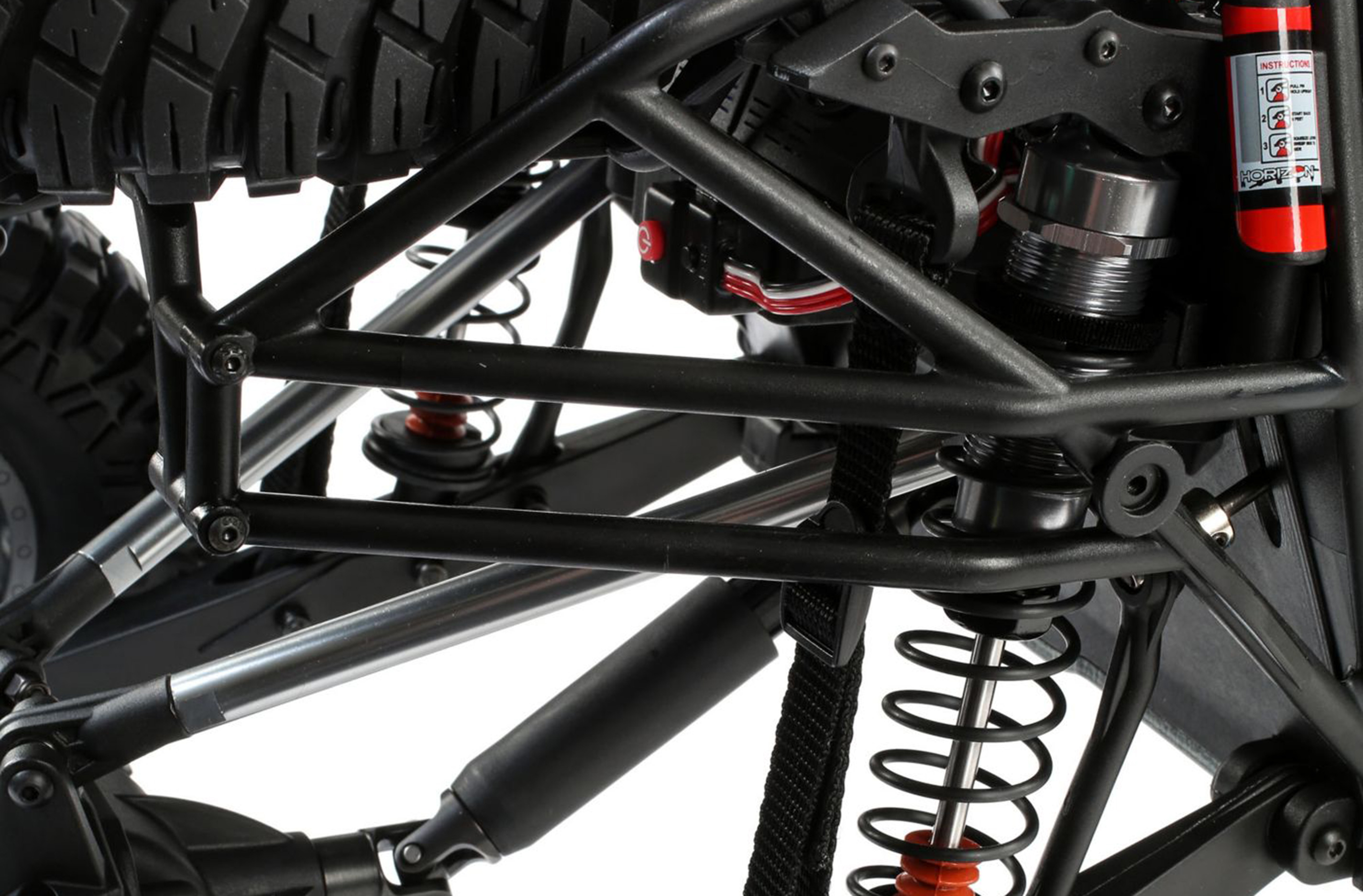 - 4mm aluminum chassis with injection-molded roll cage provides superior durability and scale looks.