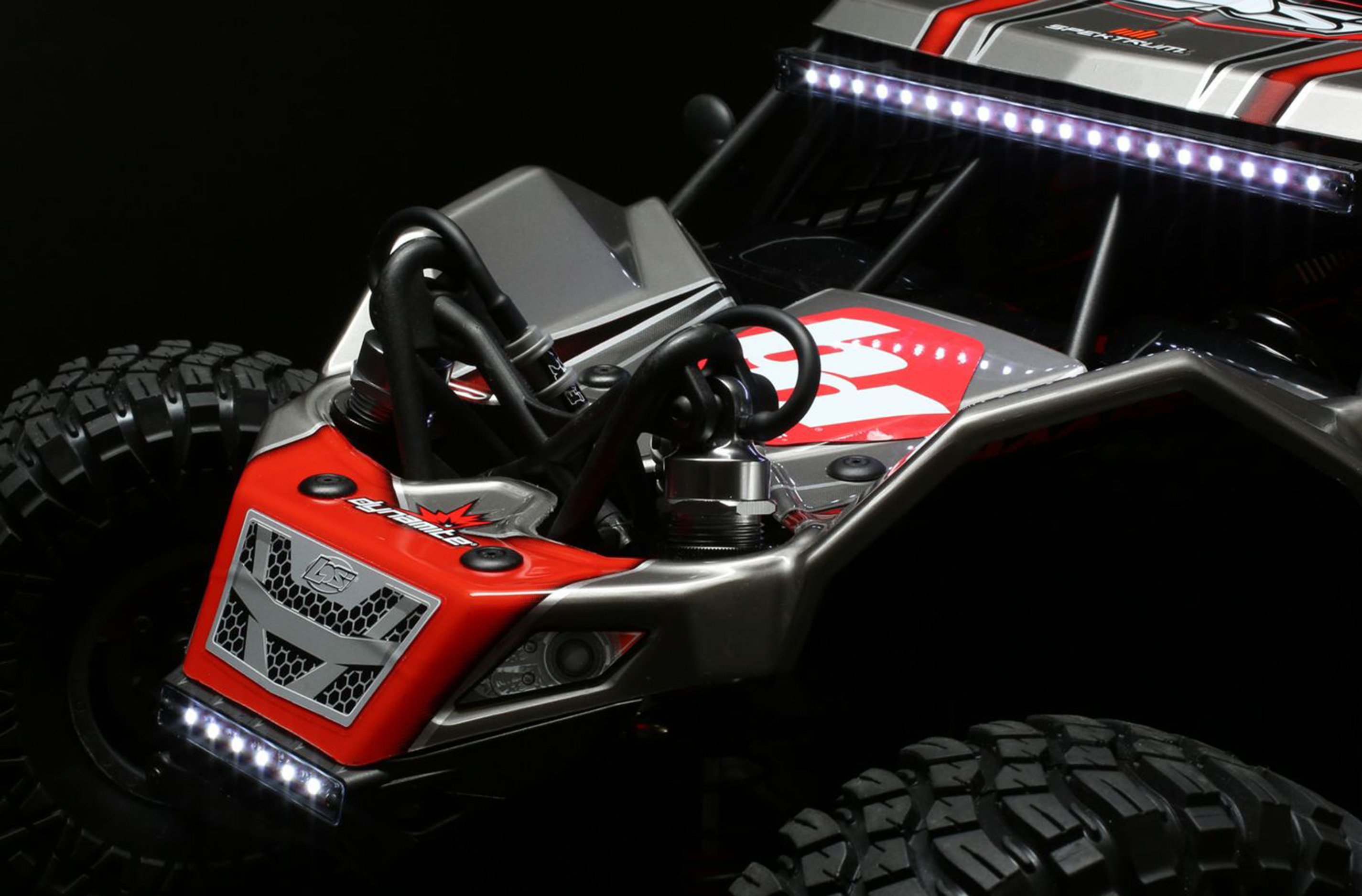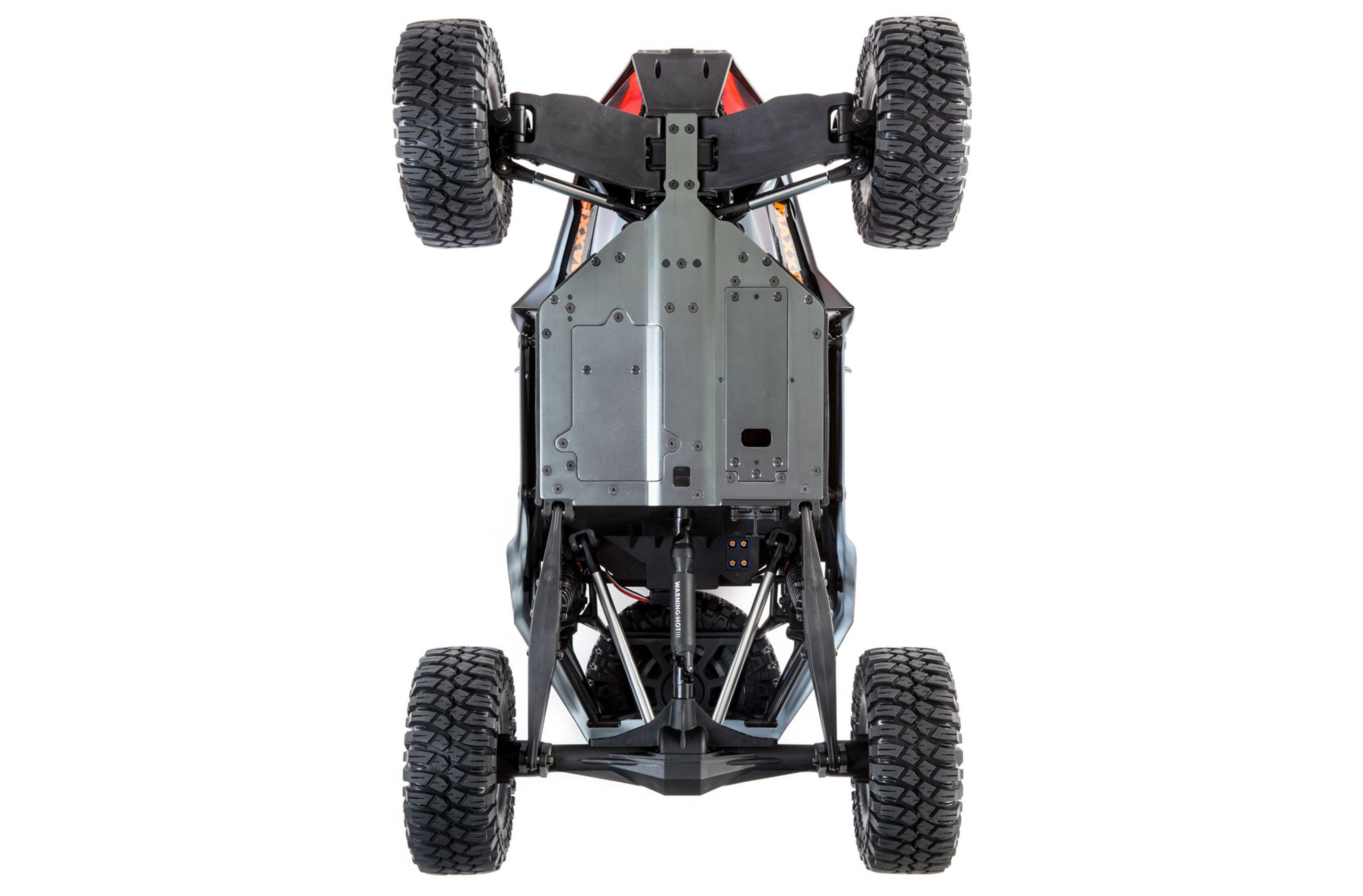 Just like the 1:1 desert trucks, the Super Rock Rey® truck comes with a super-rigid roll cage made of super-tough composite material that enhances the trucks scale looks and durability. It is integrated with the 4mm hard-anodized aluminum chassis plate providing the ultimate protection for your truck and electronics.