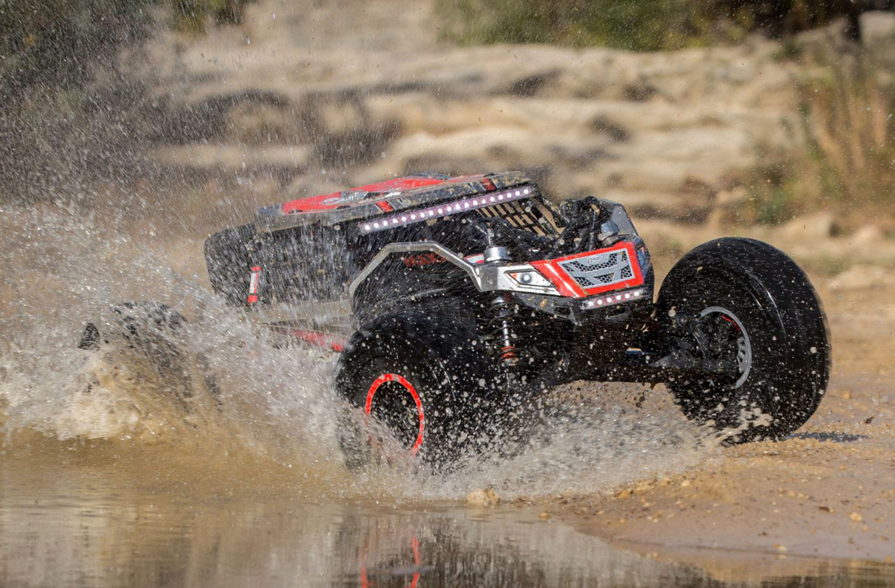The Super Rock Rey® takes its inspiration from full-scale rigs that tackle the King of Hammers and similar places others wont dare go. Realistic solid axle performance joins 8S brushless power that pushes the needle to 50+ mph or more while the stability of AVC® technology lets you hold nothing back through corners and jumps.