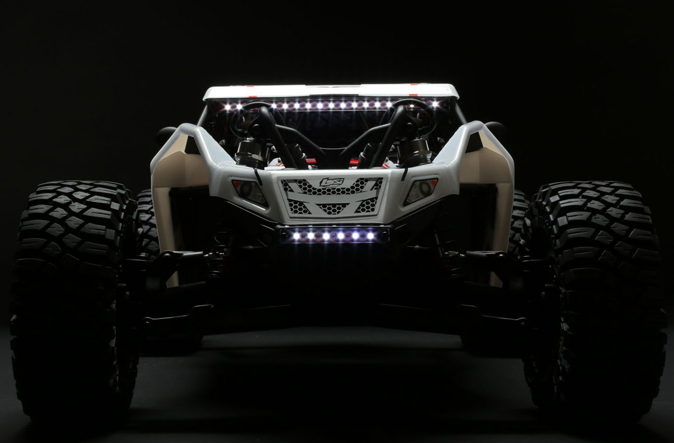 The fun doesnt stop even when the sun goes down with the Super Rock Rey. Brilliant LEDs on the two front-mounted integrated light bar cast more than enough illumination for running at night. Plus, the roll cage-mounted LEDs place only a small demand on the battery allowing you to stay out all night!