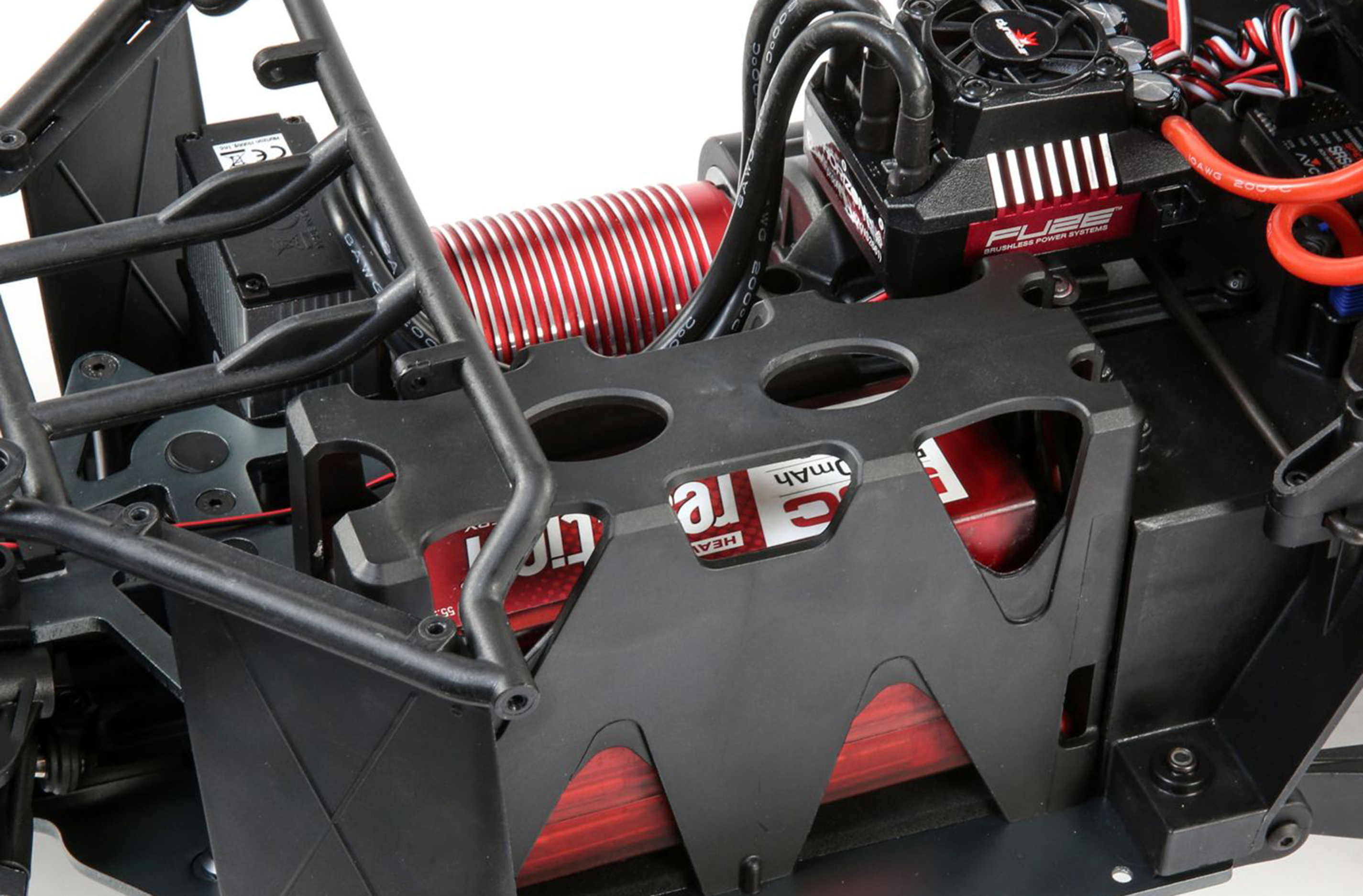 The vehicle comes equipped with a Dynamite® Fuze 750Kv brushless motor and a waterproof 160A ESC. This potent combination can handle 8S LiPo batteries (sold separately) and will allow you to hurtle across the landscape at speeds of up to 55+ mph.