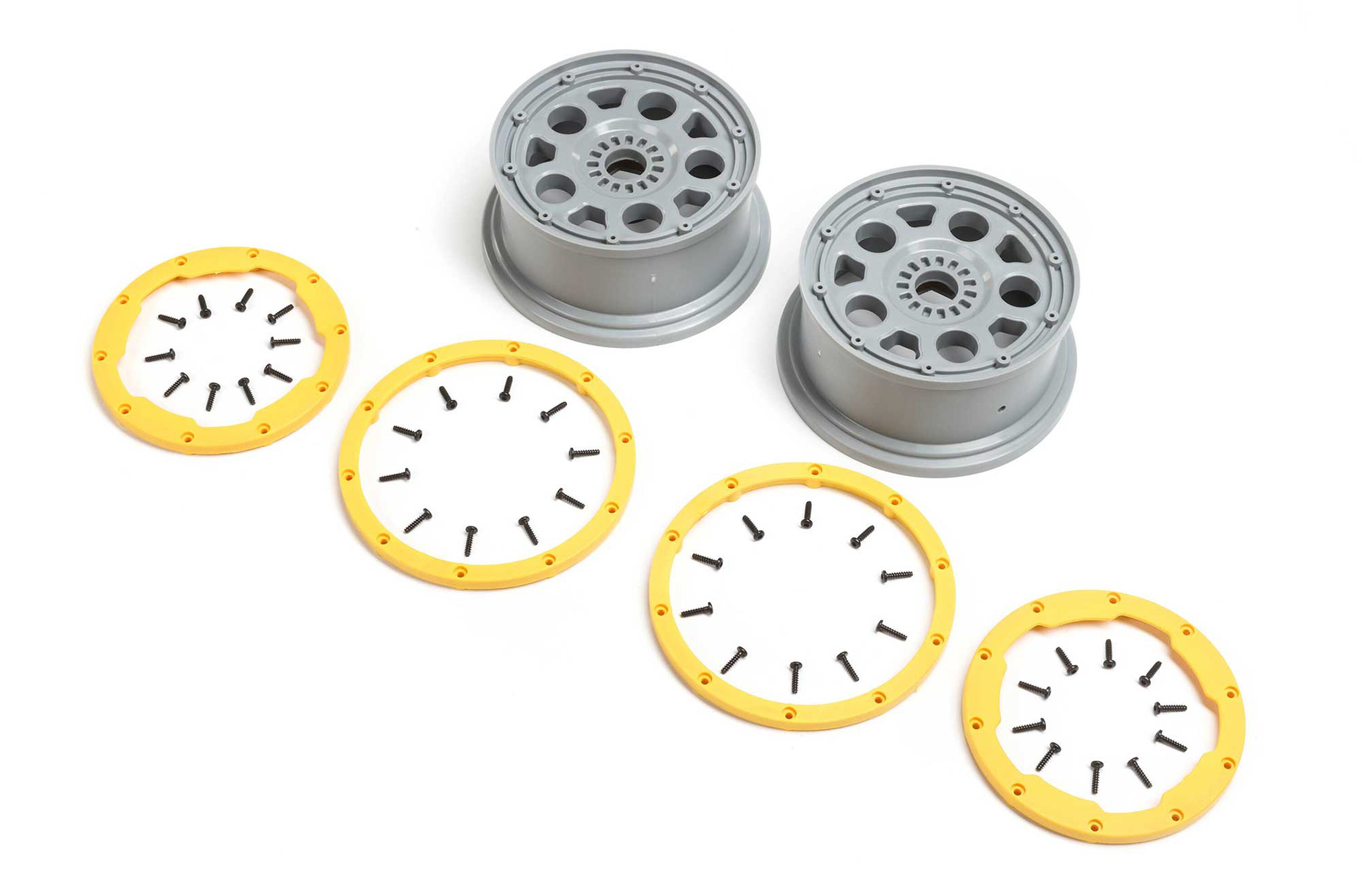 Product information "LOS45036 Losi Wheels, Silver, Yellow Beadlock (2): DBXL 2.0"