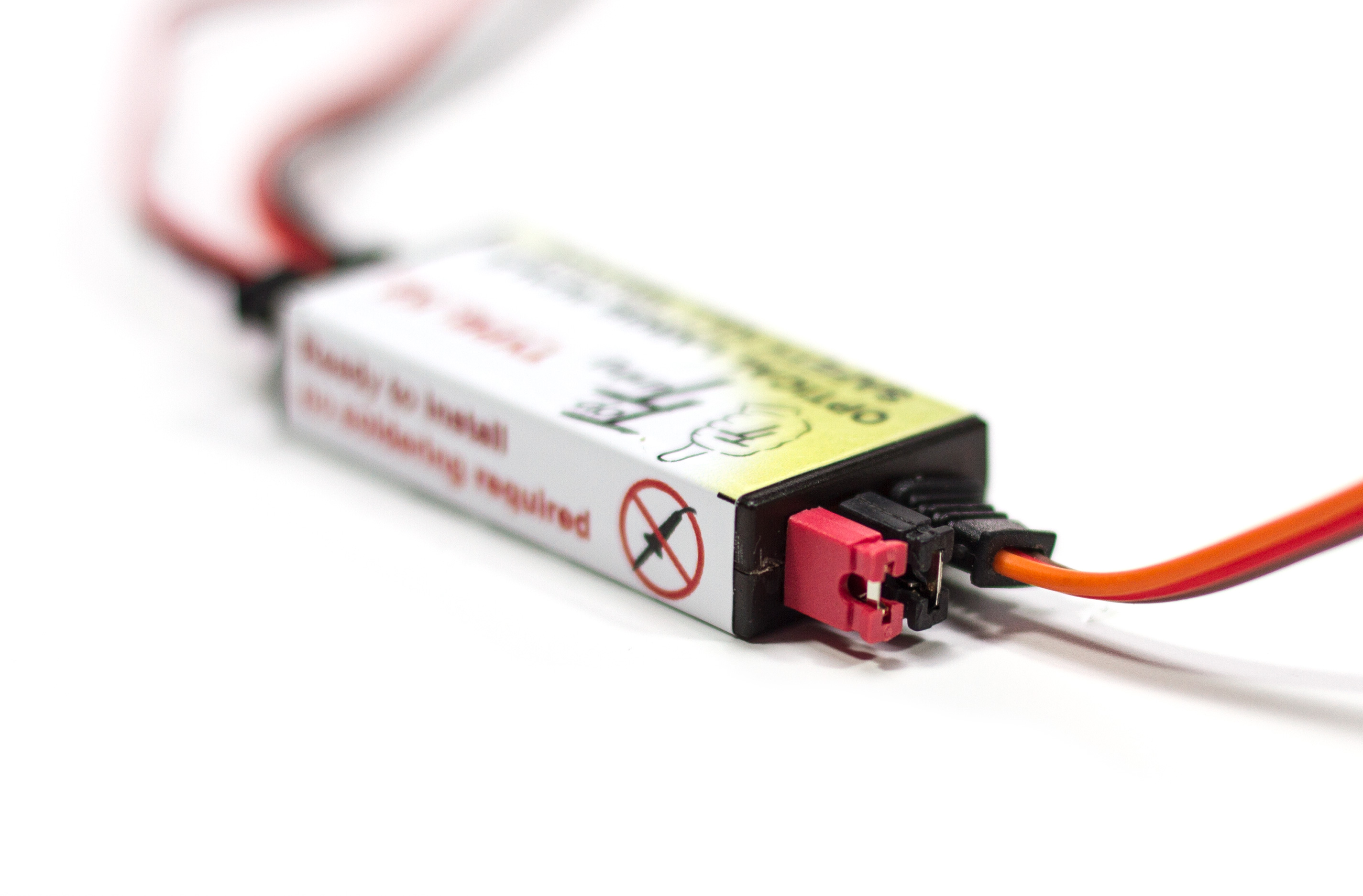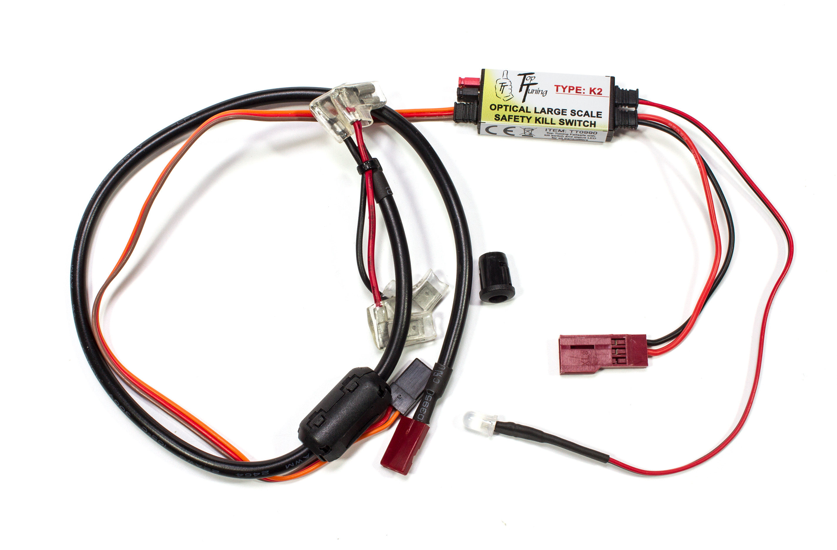 This kill switch module works with most FM and 2.4 GHz rc-systems. Not compatible with AVC-equipped receivers!