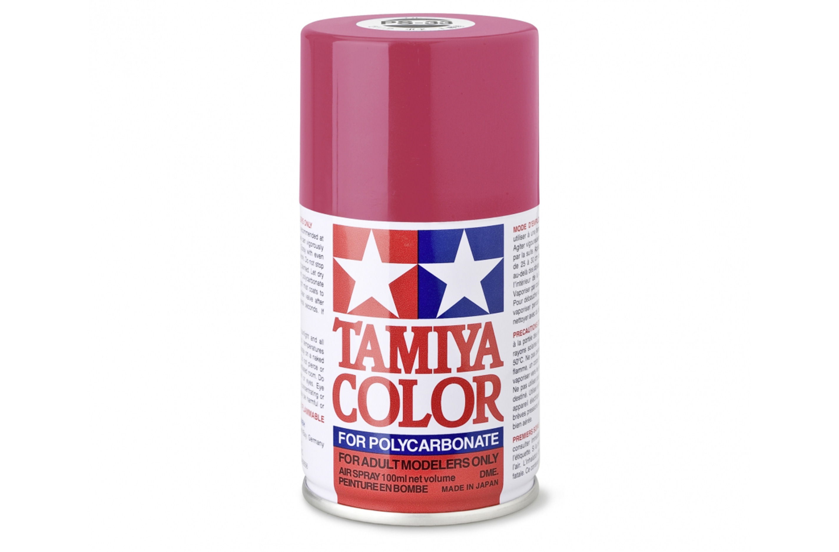 TAMIYA PS = Polycarbonate spray paints are specially developed for painting unpainted kit body shells. Numerous colour shades are available and allow the individual design of models. Each can contains 100 ml of highly opaque paint, which is oil and fuel resistant, allowing the use on nitro models.