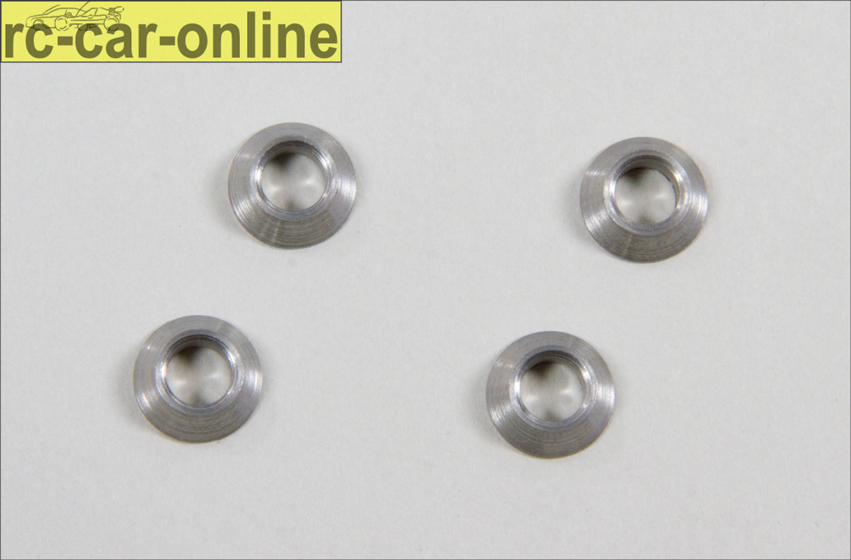 Steel taper disks, 3.5 mm thick, with a higher stiffness compared to alloy taper disks. Installation of these disks allows for larger operation angles of the metal ball joints and rose joints. You need two disks per joint.