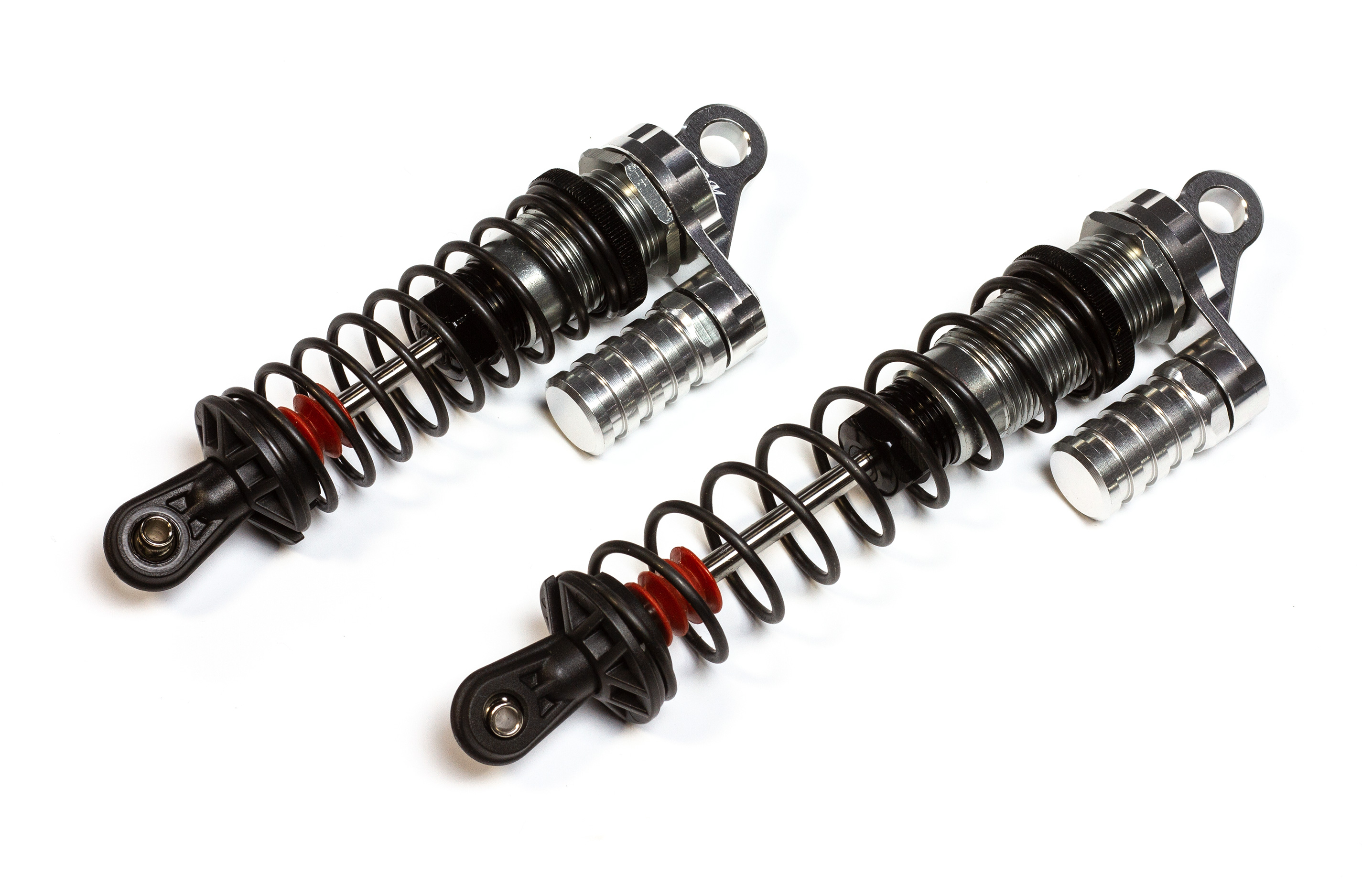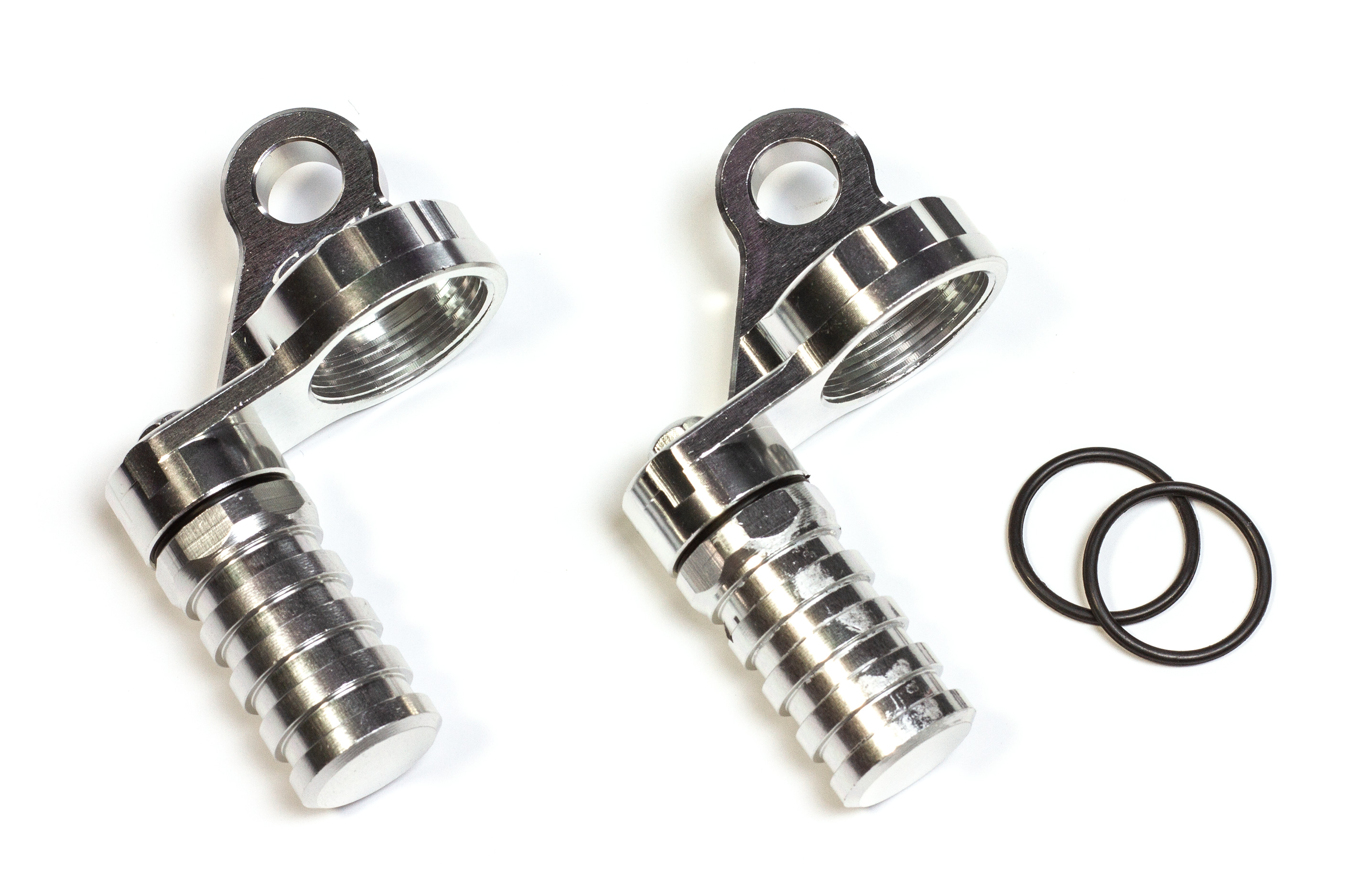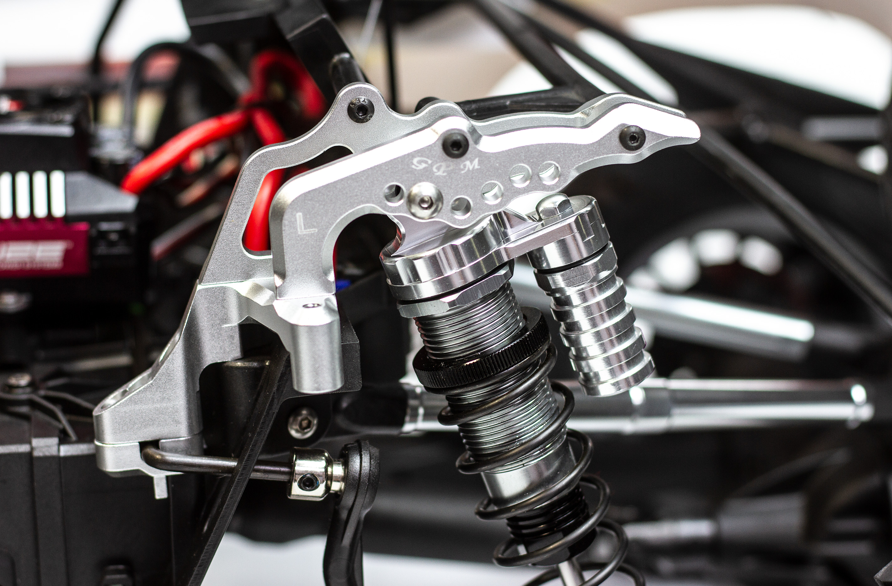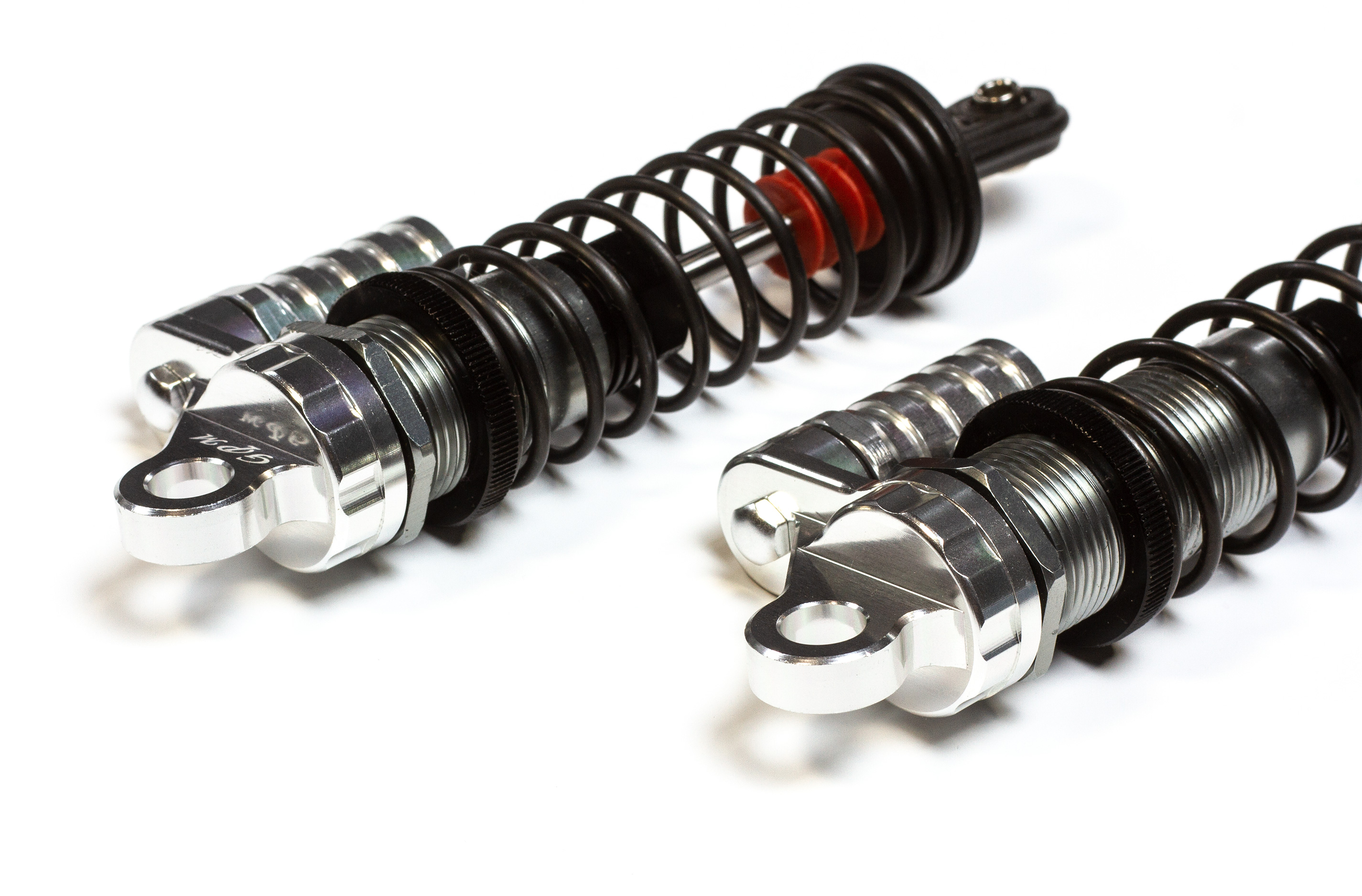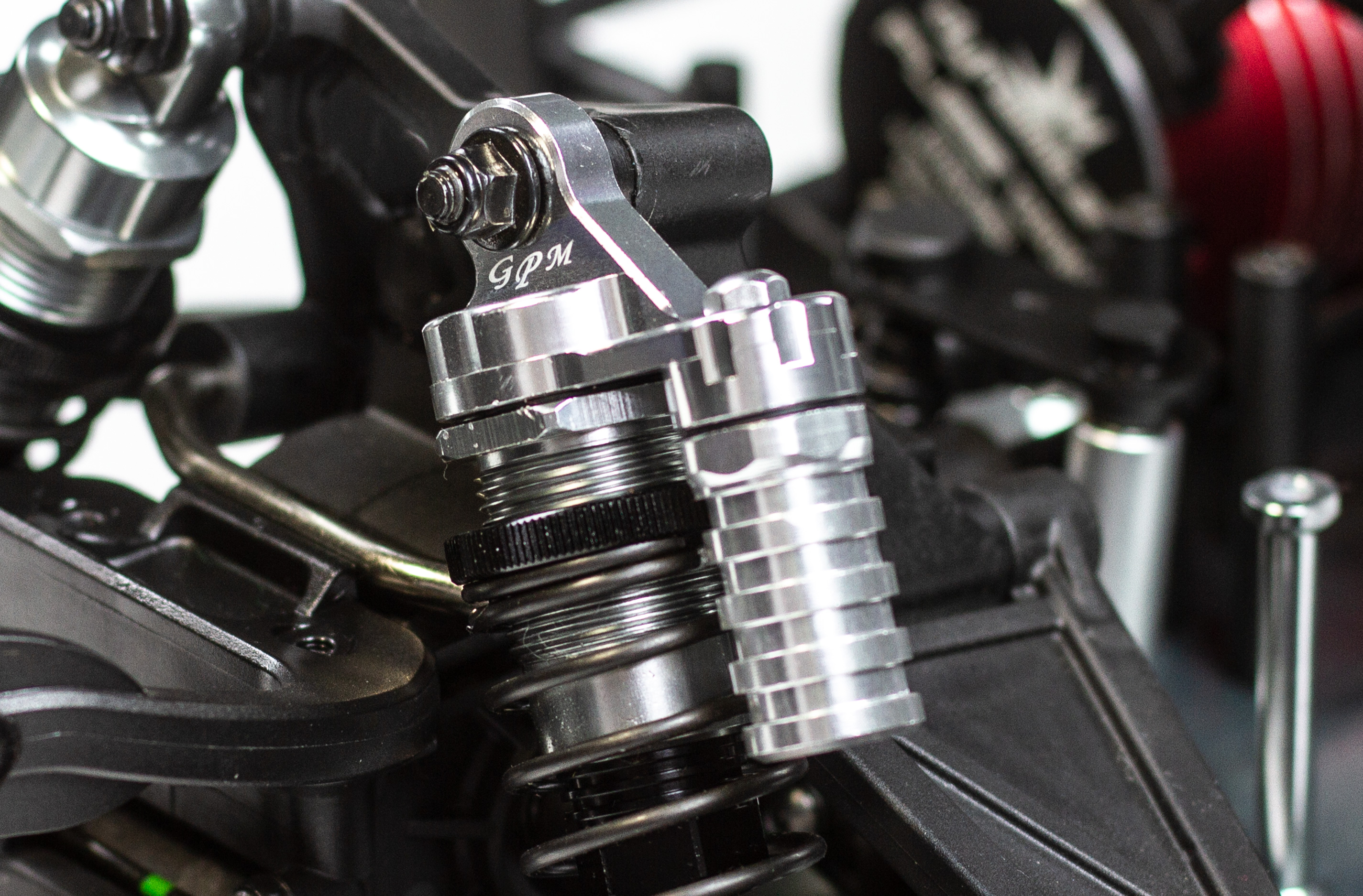 The GPM piggyback reservoir shock absorber caps for the Losi Super Baja Rey fit front and rear shocks. They increase the oil volume and the separate vent screw makes filling the shocks easier.