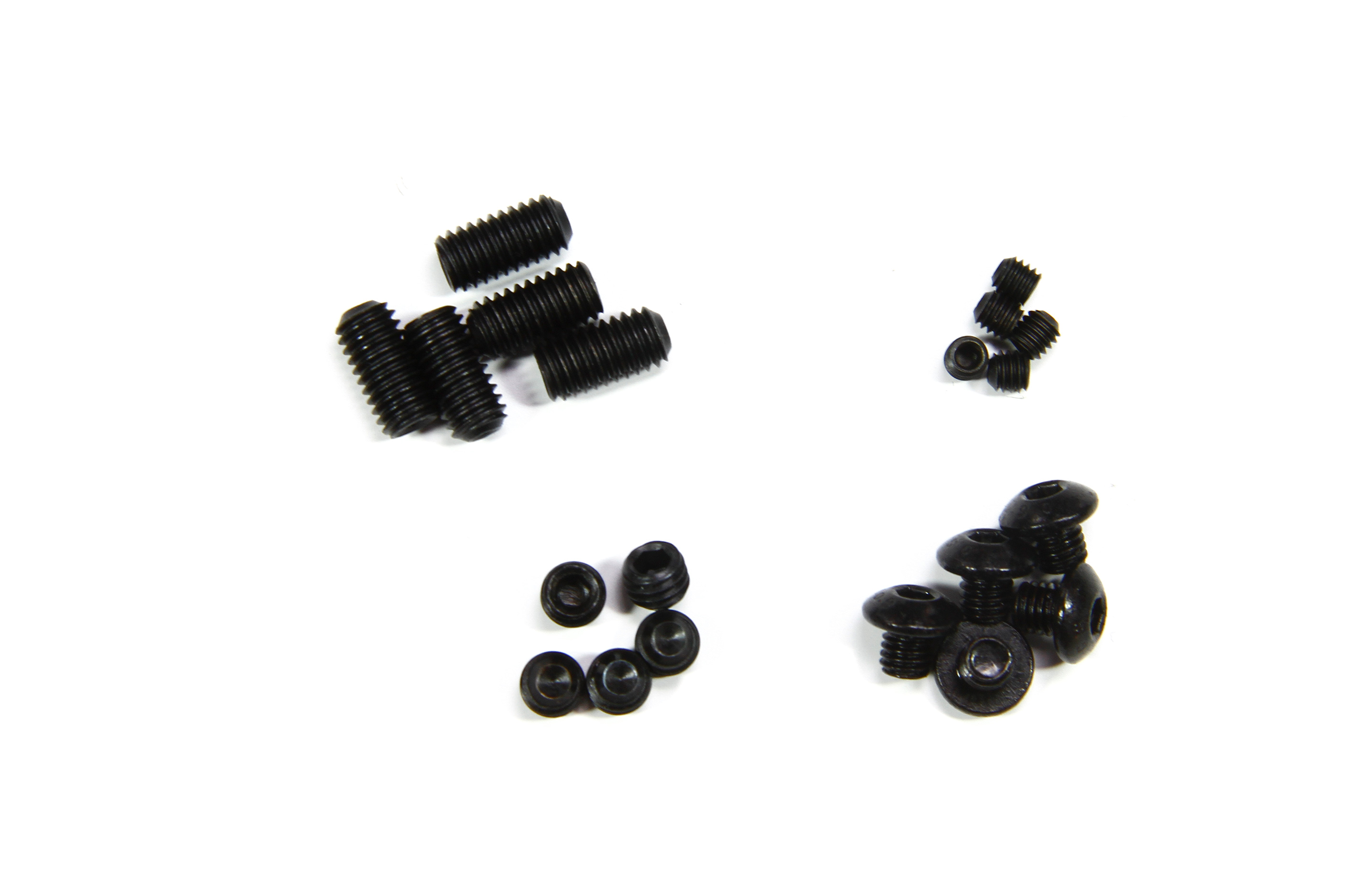 5 grub screws each of the following sizes: M4x4 / M6x5 / M6x12 and 5 button head screws M5x5