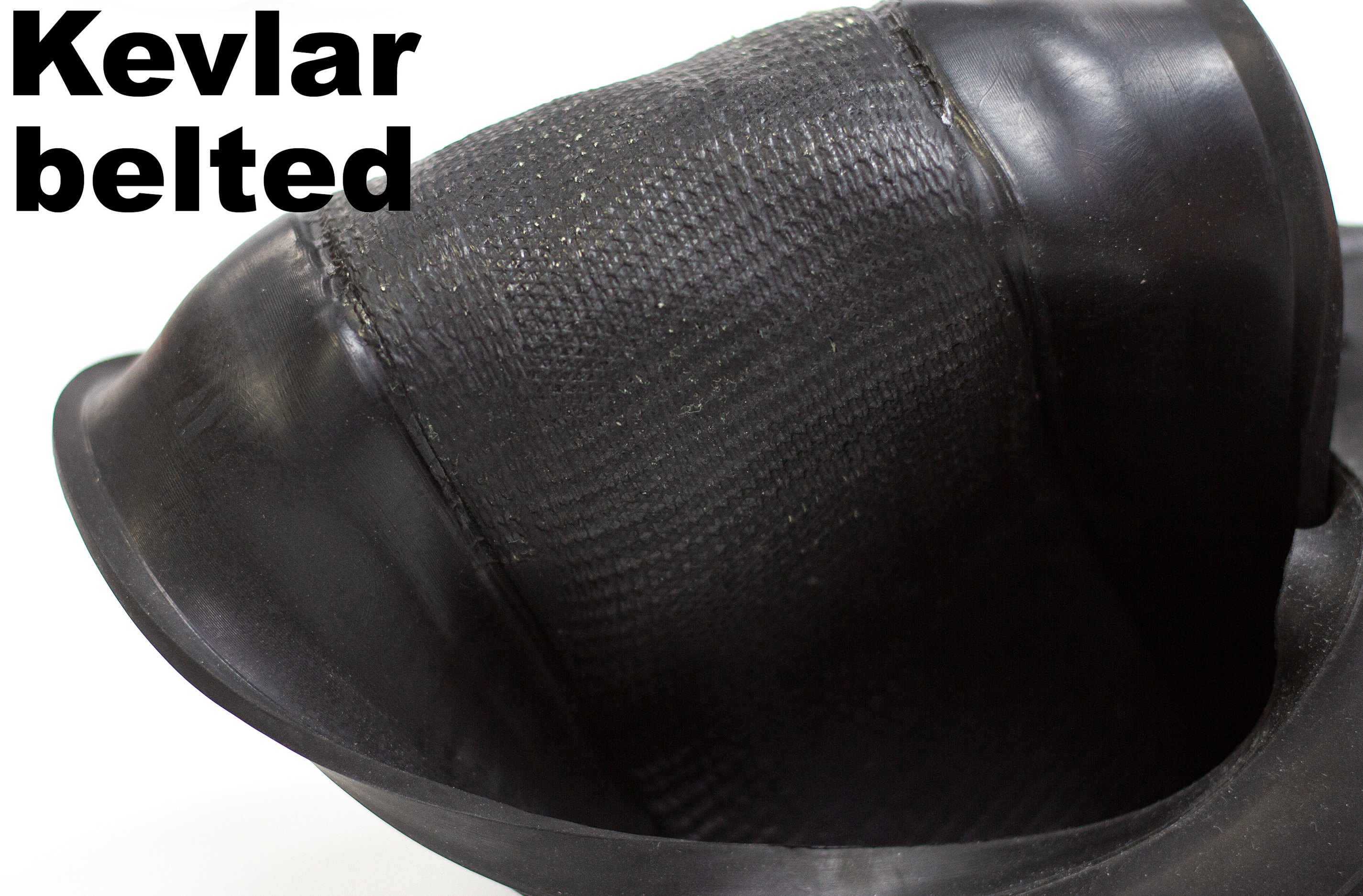 Tire with vulcanized Kevlar belt, speed resistant (no ballooning) and yet flexible.