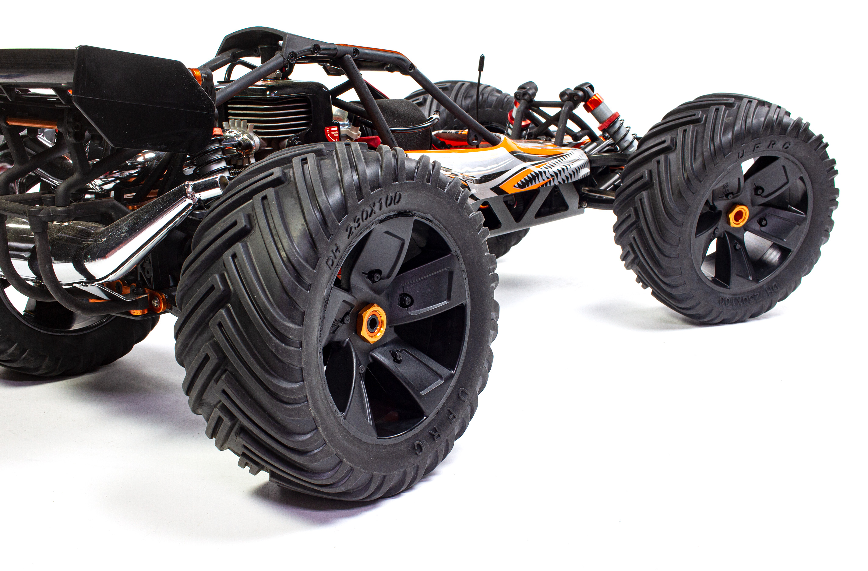 R250 Monster tires, 230 mm, with Kevlar belt reinforcement, incl. rims with 24 mm hex drive (LOSI/HPI)