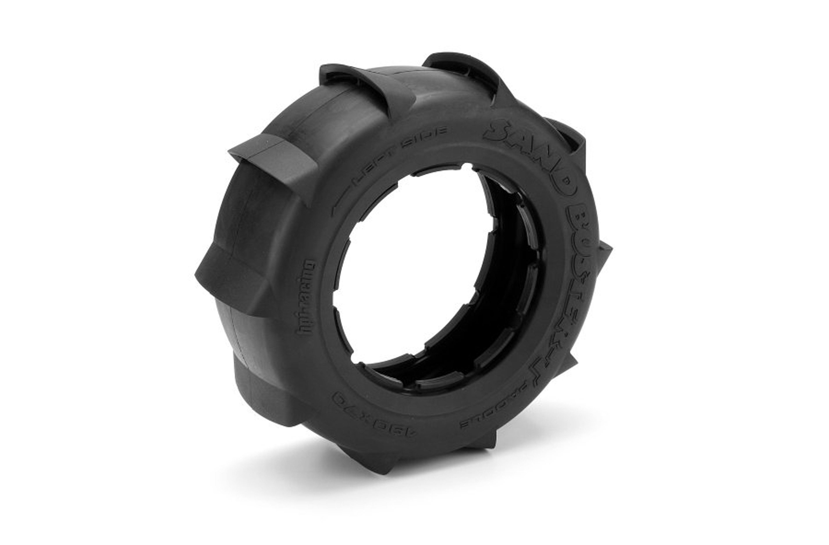 Sand Busters-T Rib fronts have a rib down the center of the tire to cut through the sand for stable steering, and the Sand Buster-T Paddle rears have 10 large paddles for maximum traction in sand and soft dirt. Sand Buster's are designed for the sand, but you can also run them in loose dirt and even in the mud!
