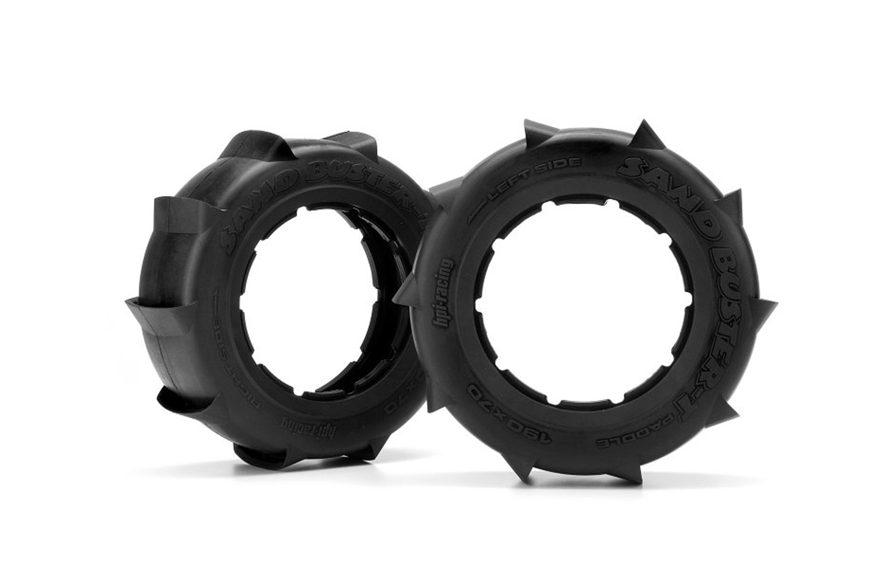Sand Buster-T Rib front and Sand Buster-T Paddle rear tires are now available from HPI Racing. These tires are designed specifically for the Baja 5T truck.