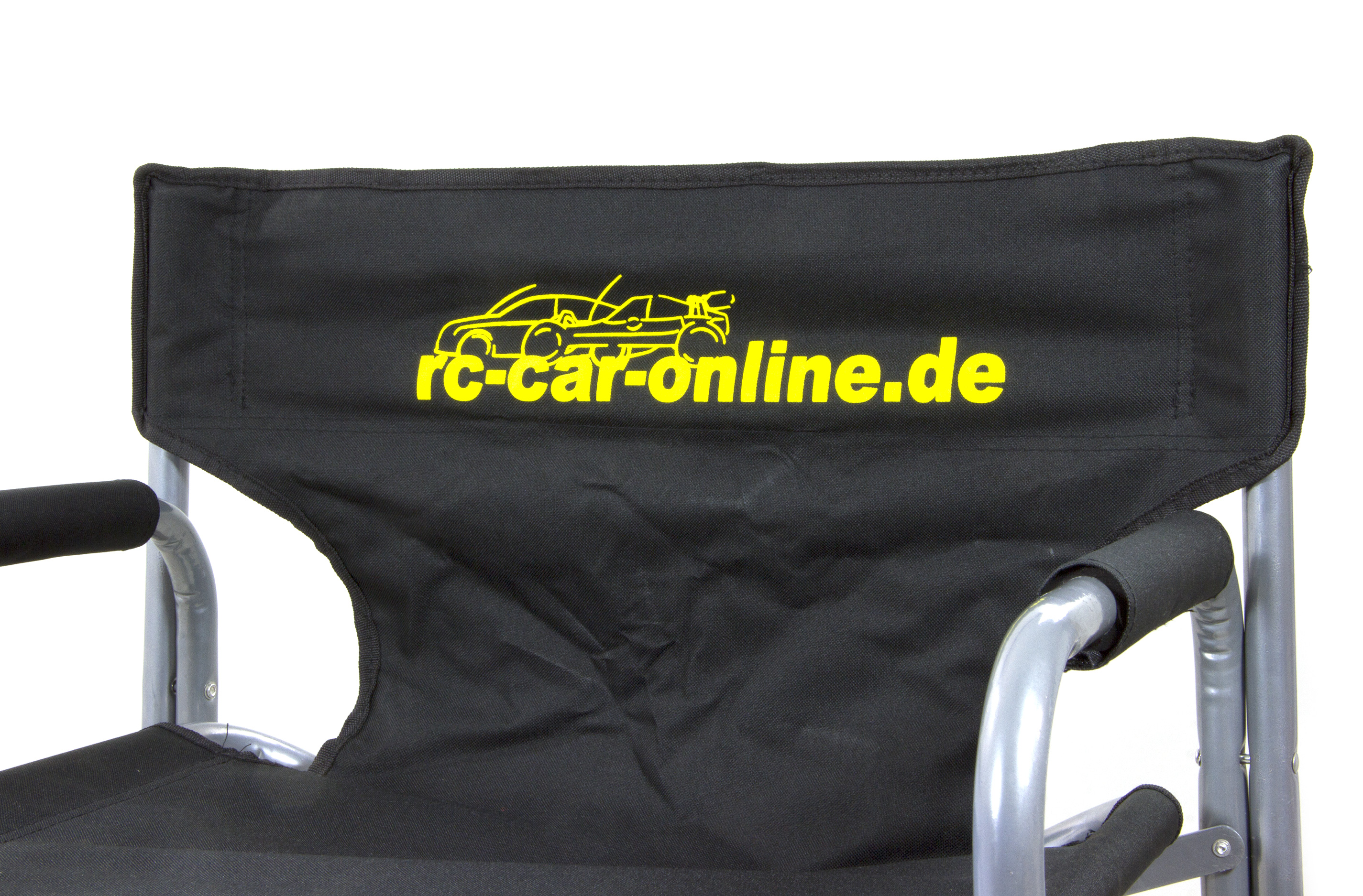 Premium version made of coated 22 mm diameter steel tube, with horizontal folding mechanism and black, back-supporting and tear-resistant high quality upholstery fabric. Back rest with printed RC-Car logo on both sides.