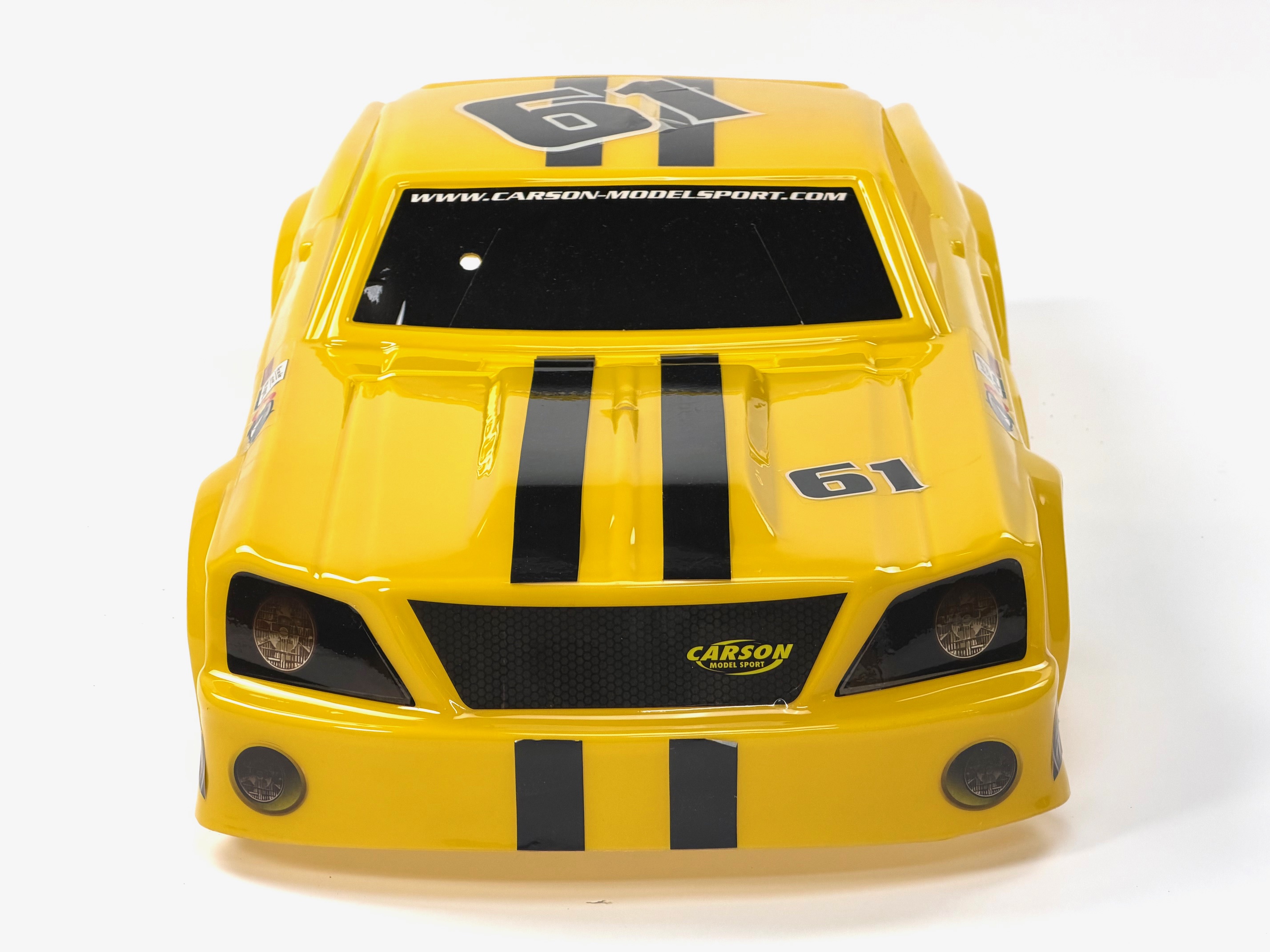 Unfortunately, the pin striping lines on the body shell have not been applied very carefully and should be reworked individually, if you place value on it. The body shell is vac-formed from 2 mm Lexan.