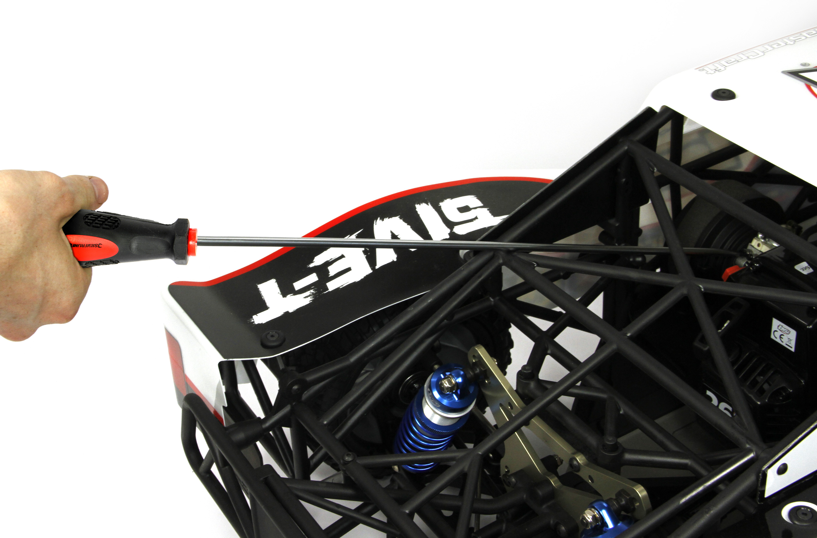 Allows you to set the carburetor on almost any 1:5 / 1:6 model also with a mounted body shell.