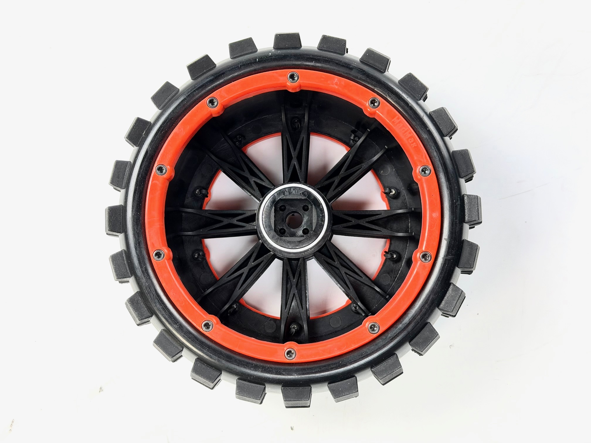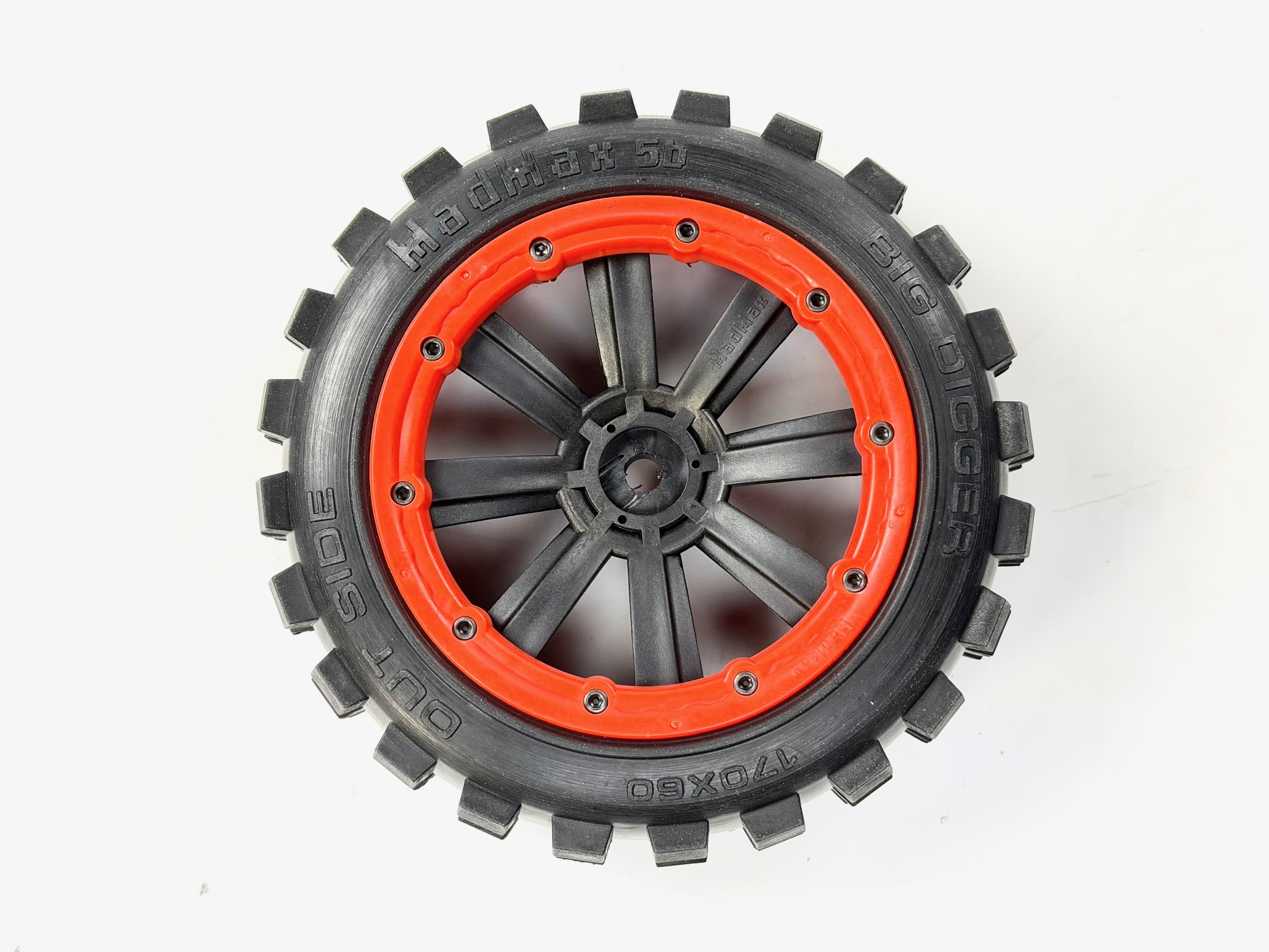 BIG DIGGER 170x60 with black MadMax Extreme rims with 20 beadlock screws, with 18 mm square socket and reinforced orange beadlock rings for FG, Smartech and many more.