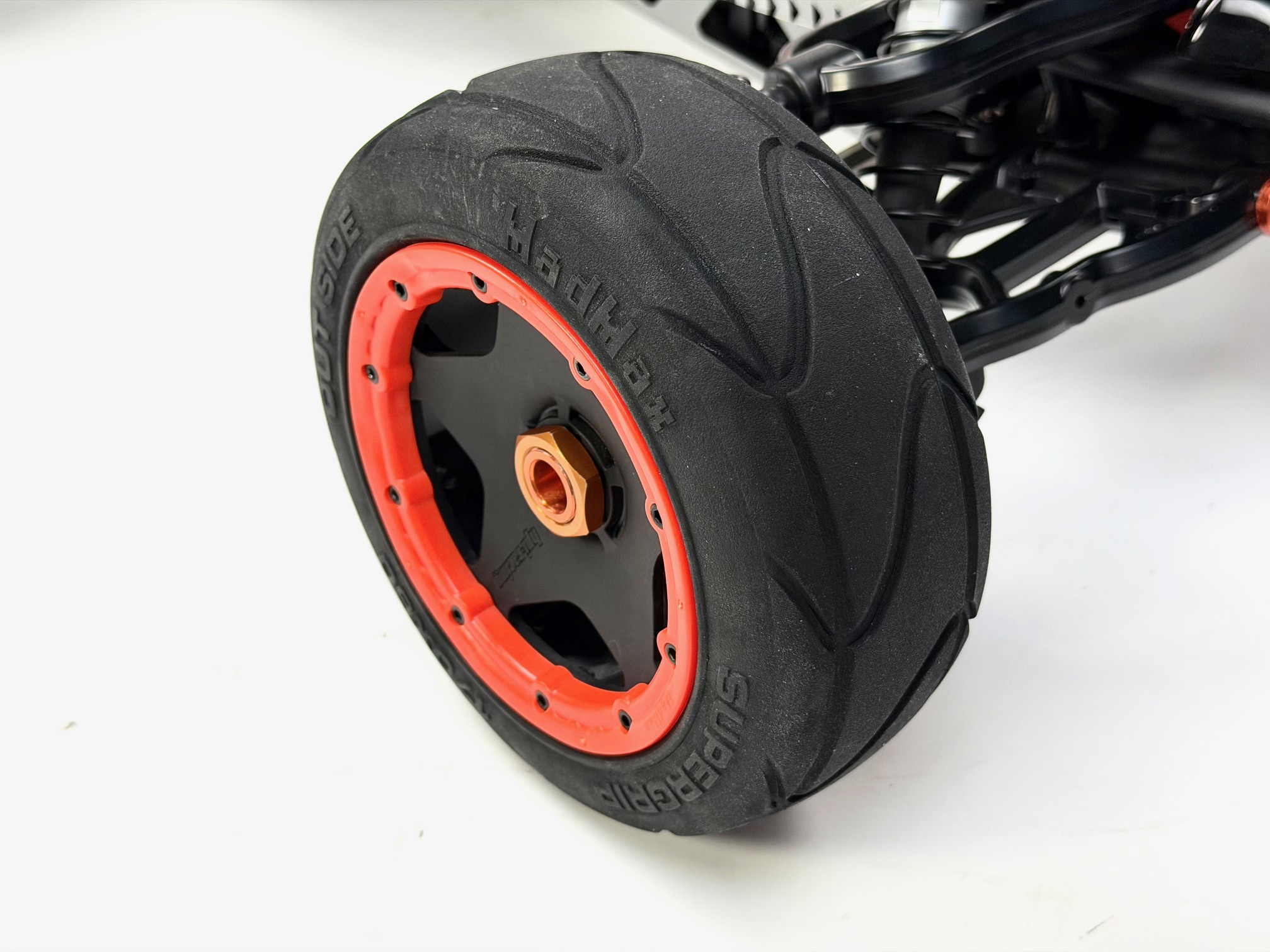 All together, the SUPER GRIP lives up to its name and provides maximum grip, which makes it necessary to use the supplied 3 mm beadlock screws for the MadMax EXTREME rims instead of the usual 2.5 mm screws. Additionally, the seating of these screws should be checked after each use.
