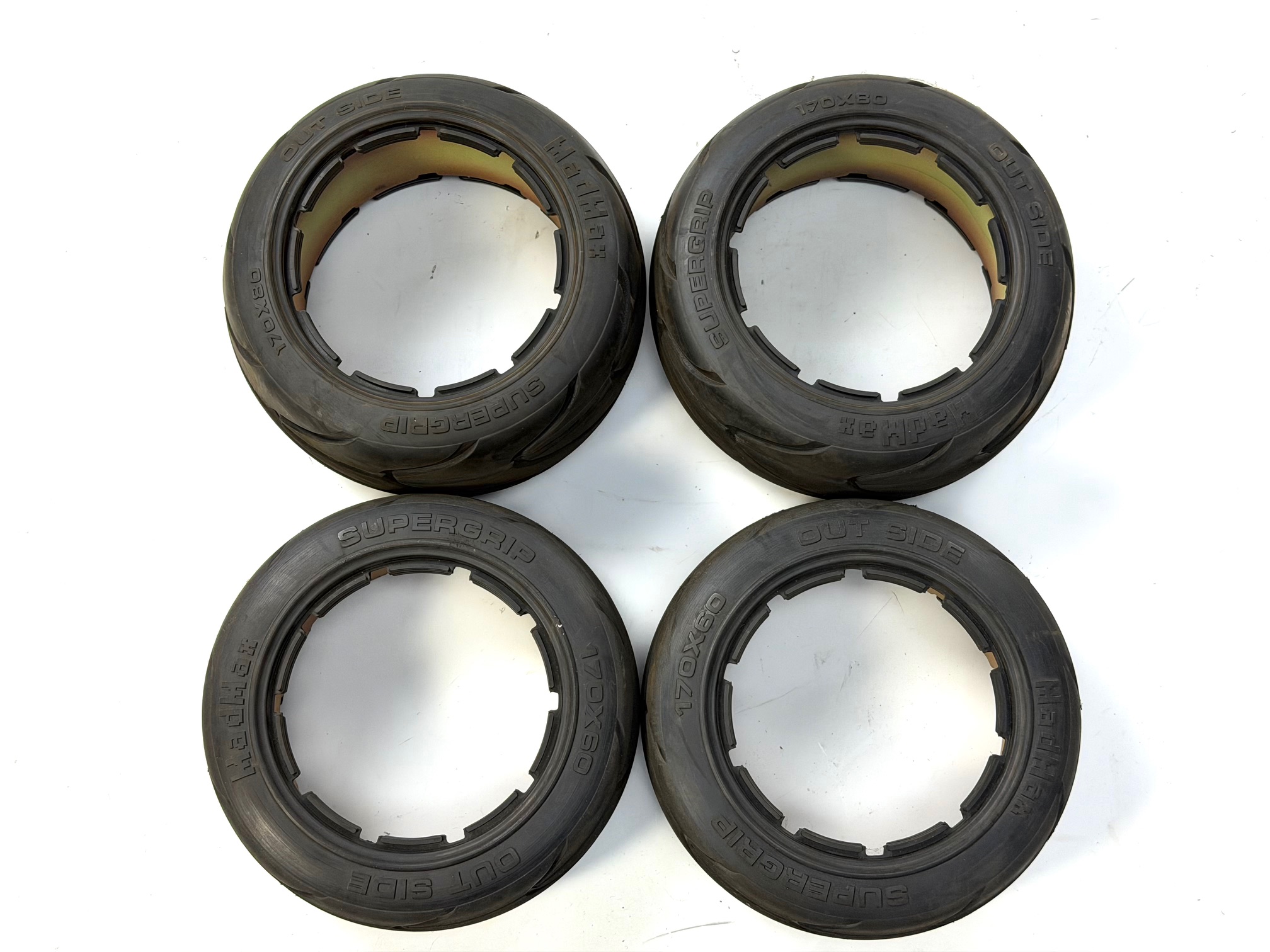 y157 Madmax Supergrip Onoad tyres 60+80 mm + insert for 1/5 + 1/6 off-roaders, 2 pairs, used