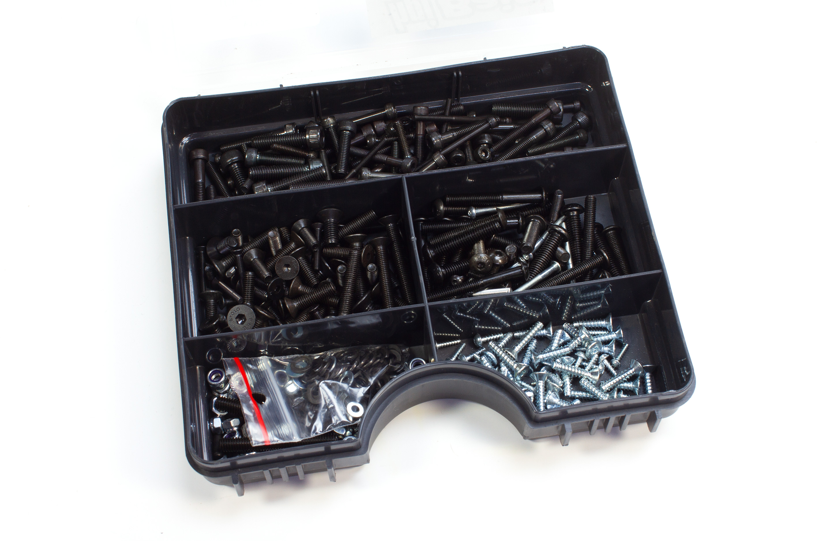 Das Set besteht aus insgesamt 434 Schrauben, Muttern und Scheiben, in unterschiedlicher Stückzahl, die alle am Fahrzeug im Einsatz sind.
