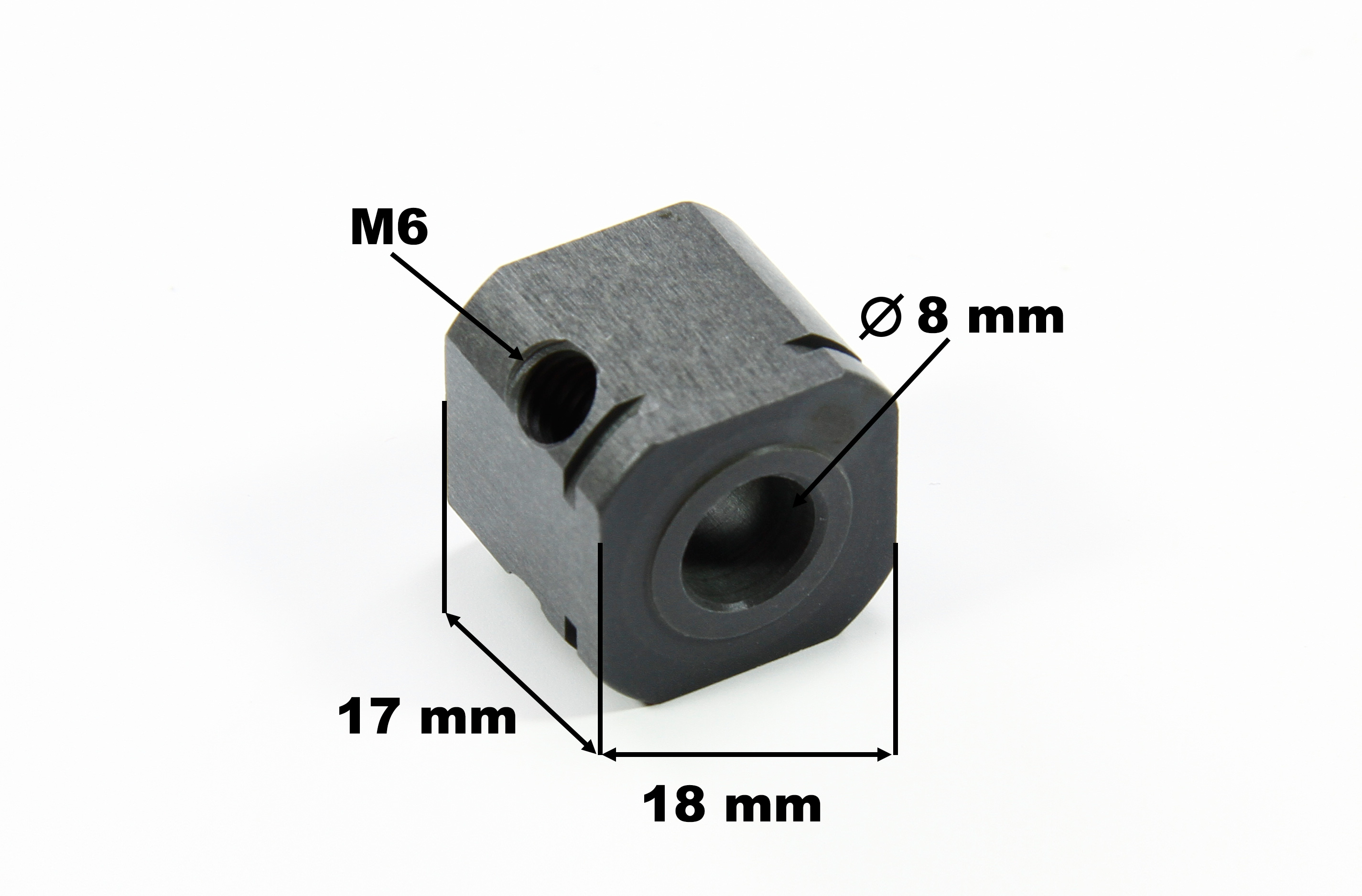 Durch die doppelte Konterung per 6 mm Madenschraube wird eine erheblich höhere Haltekraft erzielt. Jedoch empfiehlt sich bei der Montage der Einsatz von mittlerem Schraubensicherungslack (Link: y0114)!
