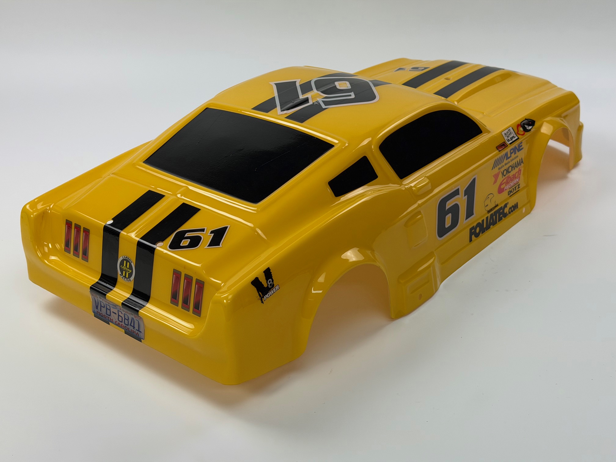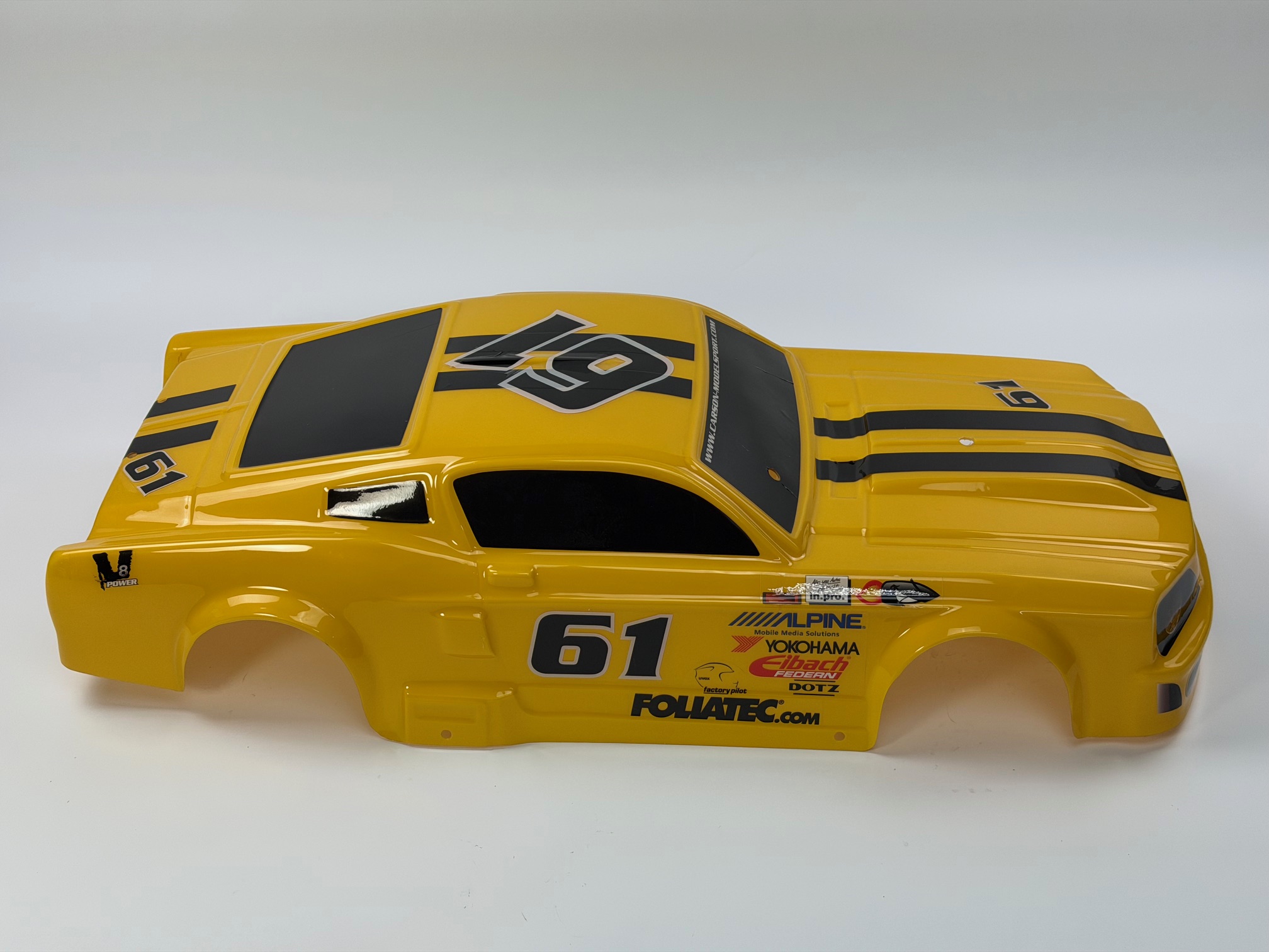 y1080/15 leicht beschädigte gelbe Ford Mustang Karosserie 530/535 Radstand, gebraucht