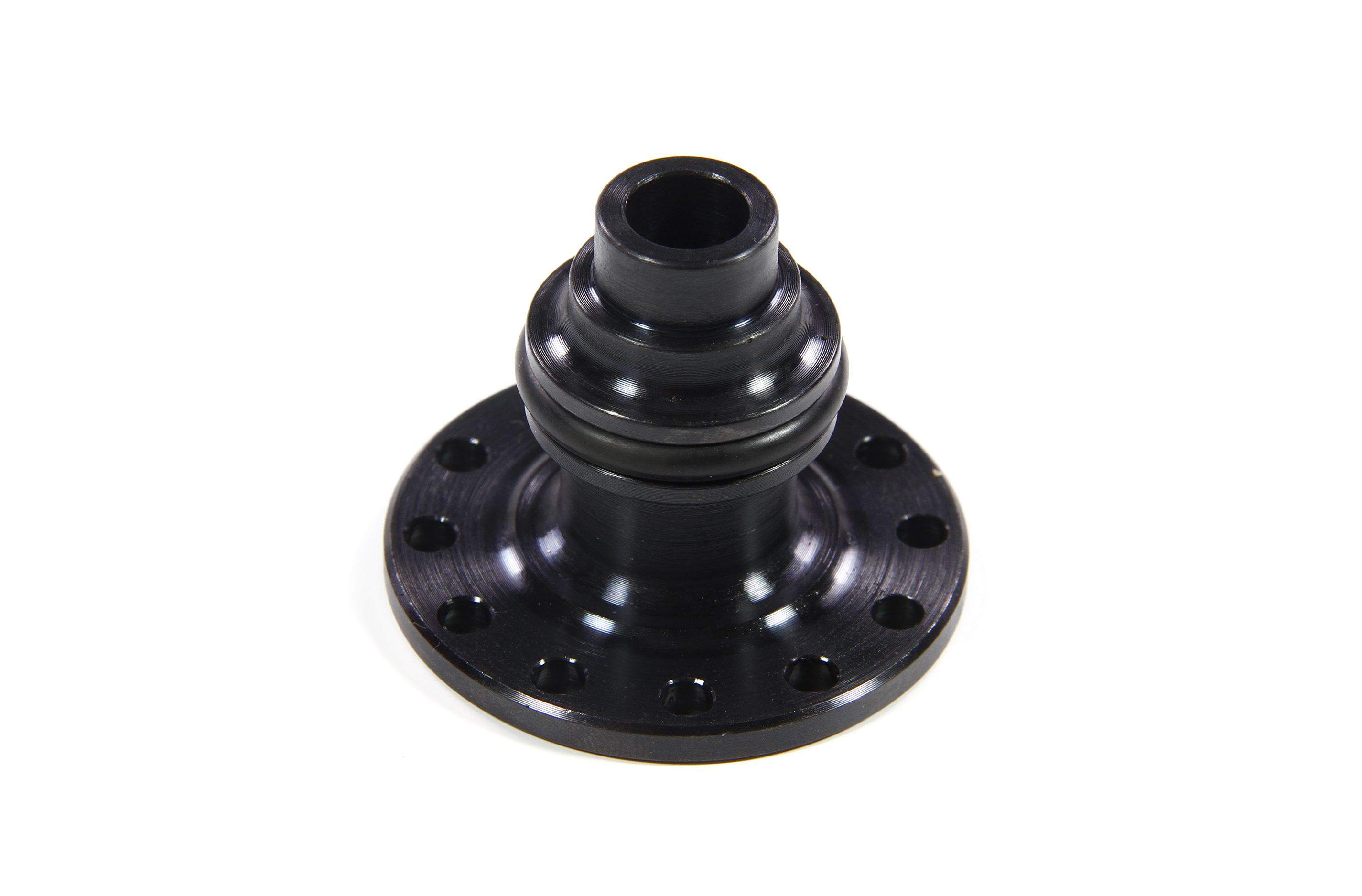 Die Einheit ist aus hochwertigem brünierten Stahl sauber gefertigt und sehr stabil. Die Baulänge entspricht einem normalen Differentialgehäuse mit Dichtung. Diese wird beim Einsatz des starren Durchtriebs nicht mehr verwendet. Der Mitnehmerstift der vorderen Abtriebswelle wird durch einen O-Ring gesichert. Die Schrauben zur Verbindung mit dem Hauptzahnrad werden mit Stopmuttern gesichert. Dadurch entfällt zum einen die Wartezeit auf das Aushärten von Schraubensicherungsmittel, zum anderen ist das Entfernen von Schrauben mit beschädigtem Kopf erheblich unkritischer.