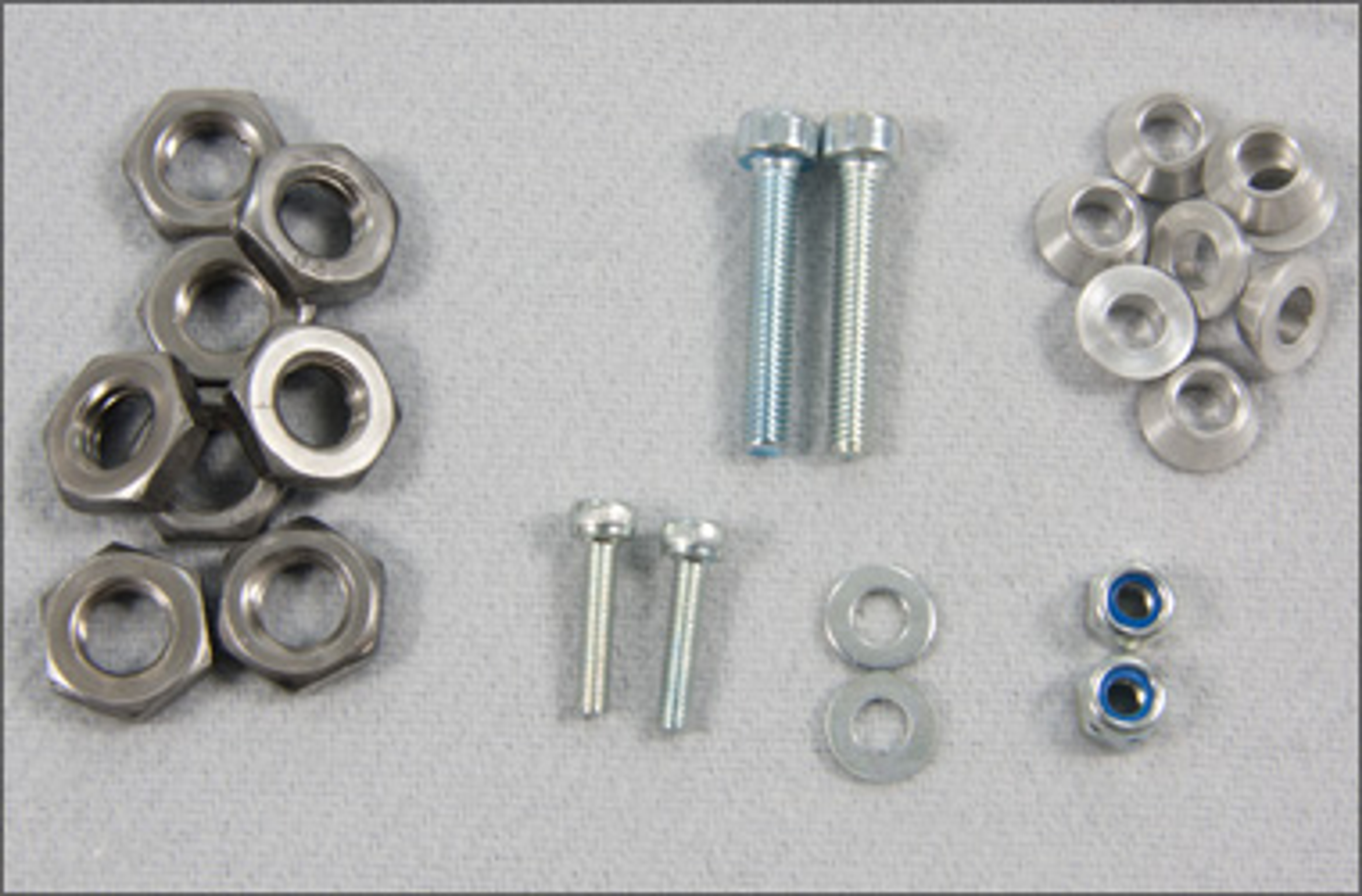 Set besteht aus schmalen Querlenkern hinten unten, Alu-Kugelgelenke, Querlenkerstifte, Kleinteile und Schrauben.